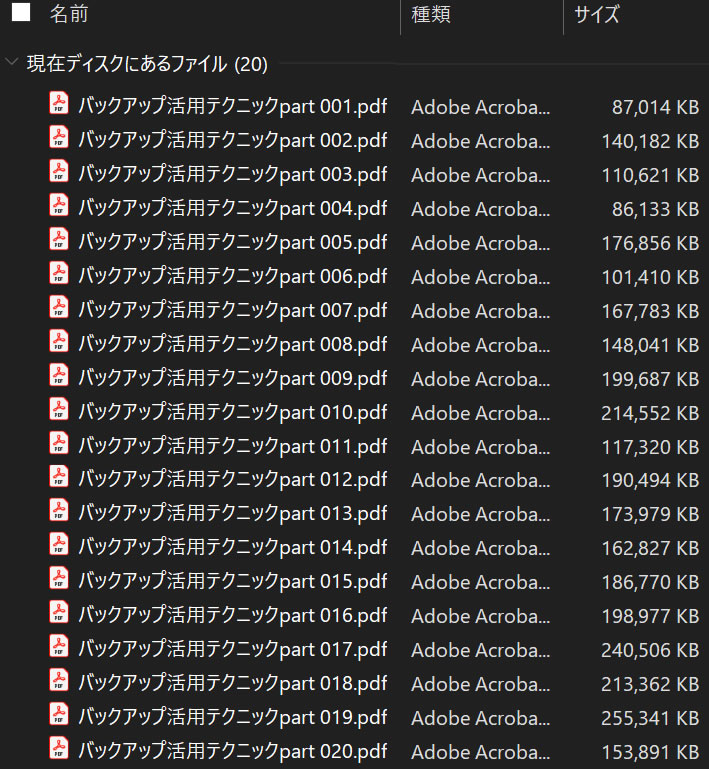 ちなみに各1冊あたりのデータサイズです。100~200MB前後なのでスキャンの圧縮率は高めのようです。