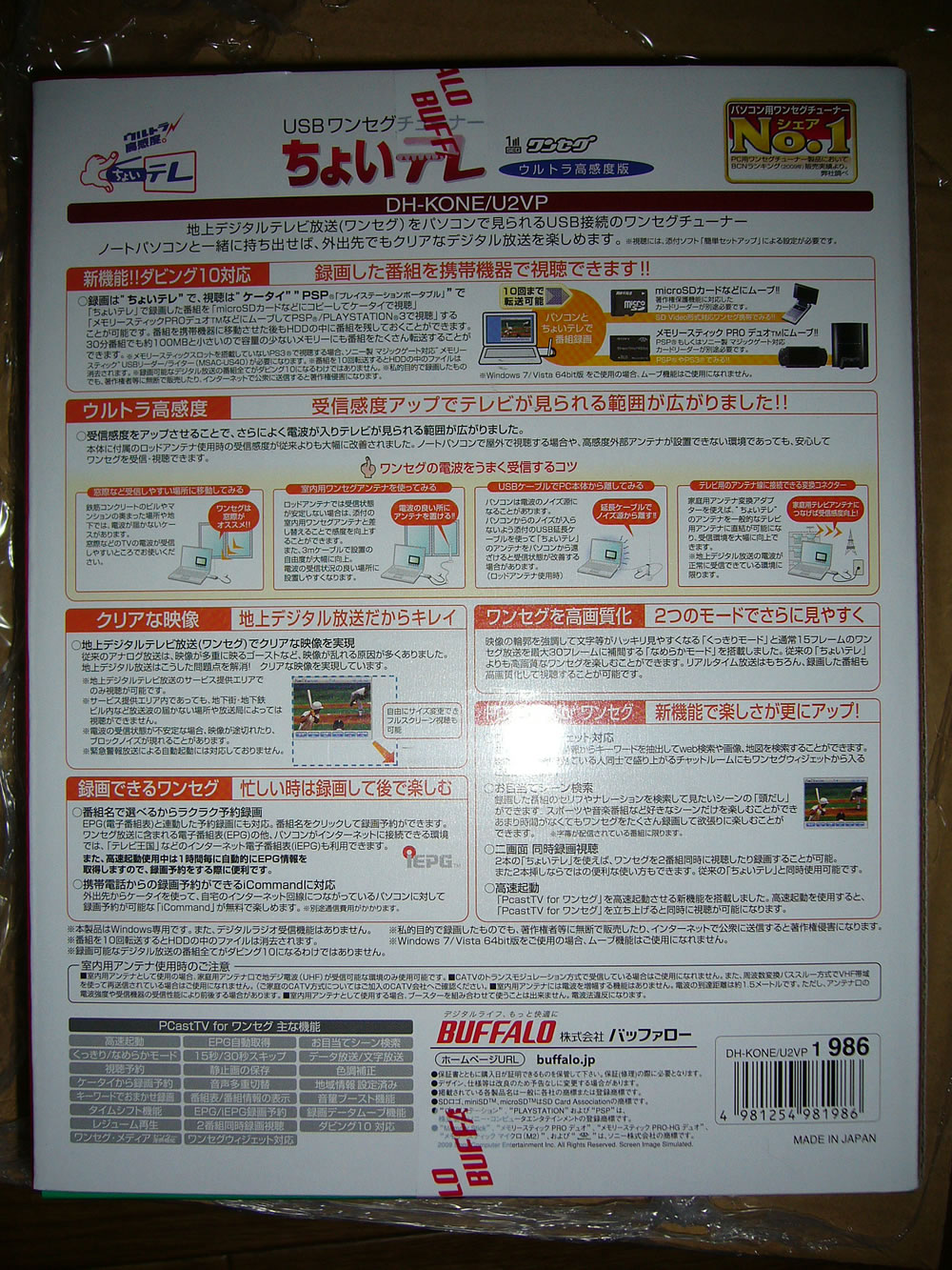 BUFFALO ワンセグチューナー「DH-KONE/U2VP」を購入したのでレビューします。