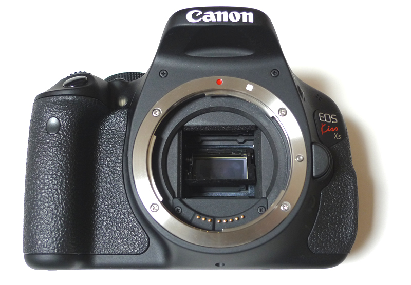 ボディ正面。APS-CセンサーとEFマウントマウント。