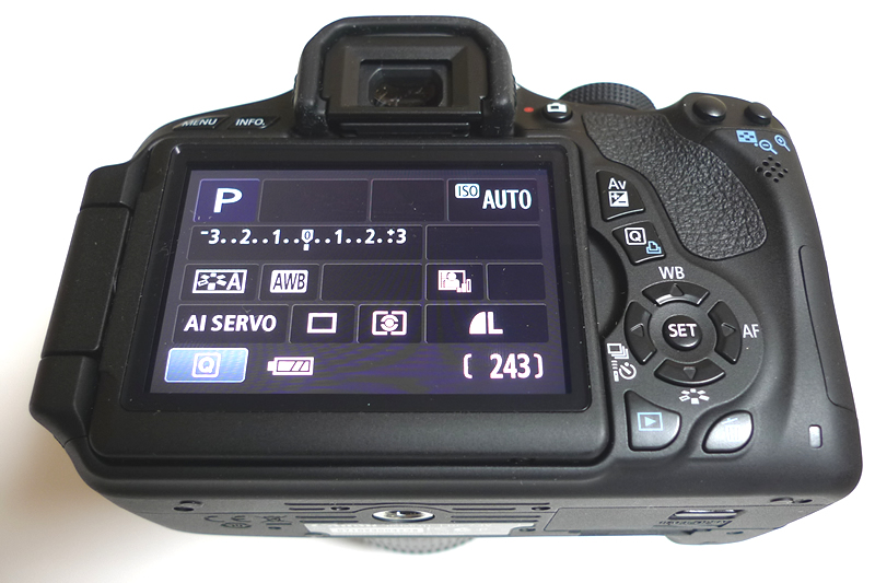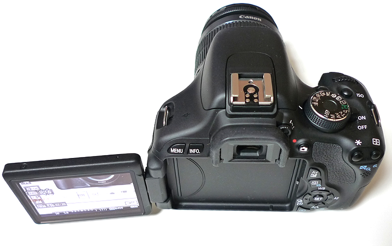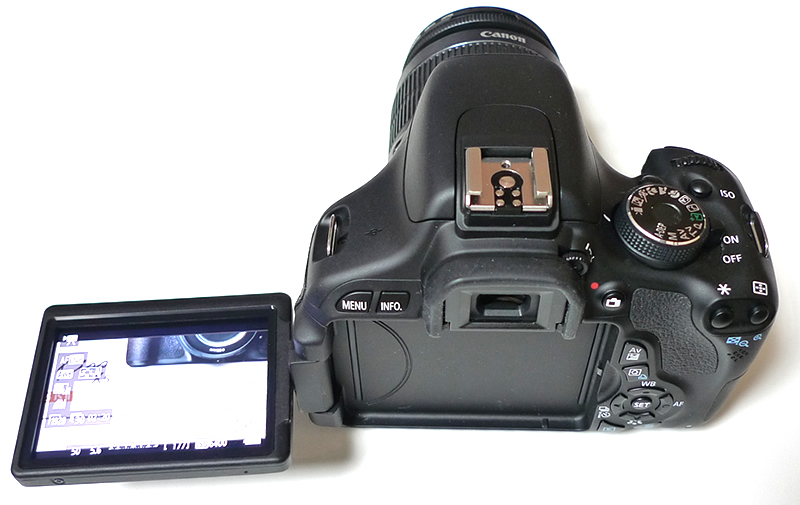液晶モニターを横に開いた状態。バリアングルなので、角度を変えながら撮影できます。