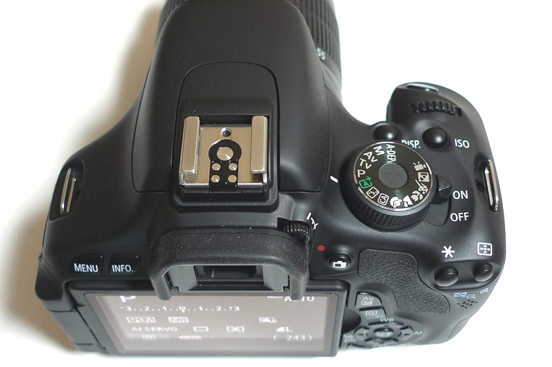 外付けストロボやアクセサリー装着用のホットシュー。コンパクトながら必要機能をしっかり搭載。