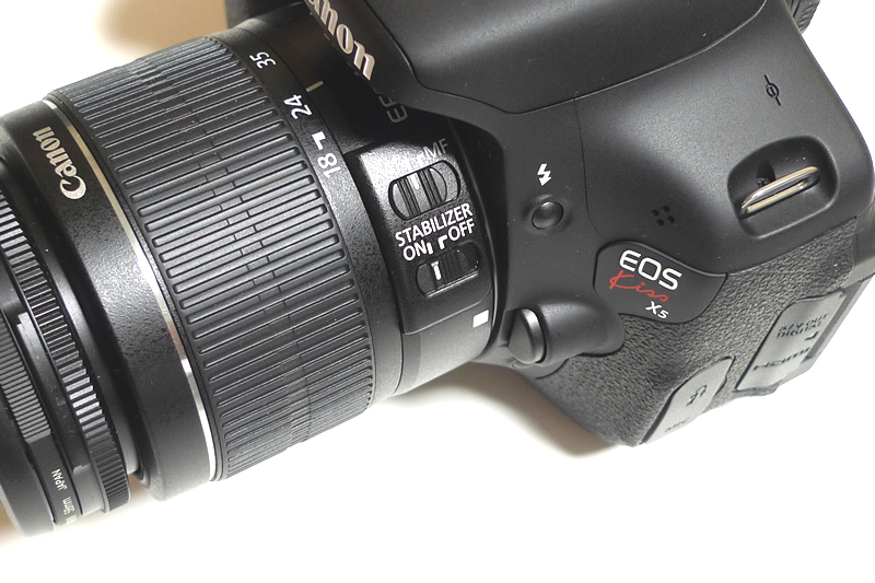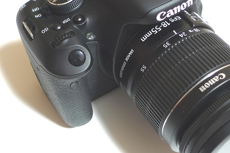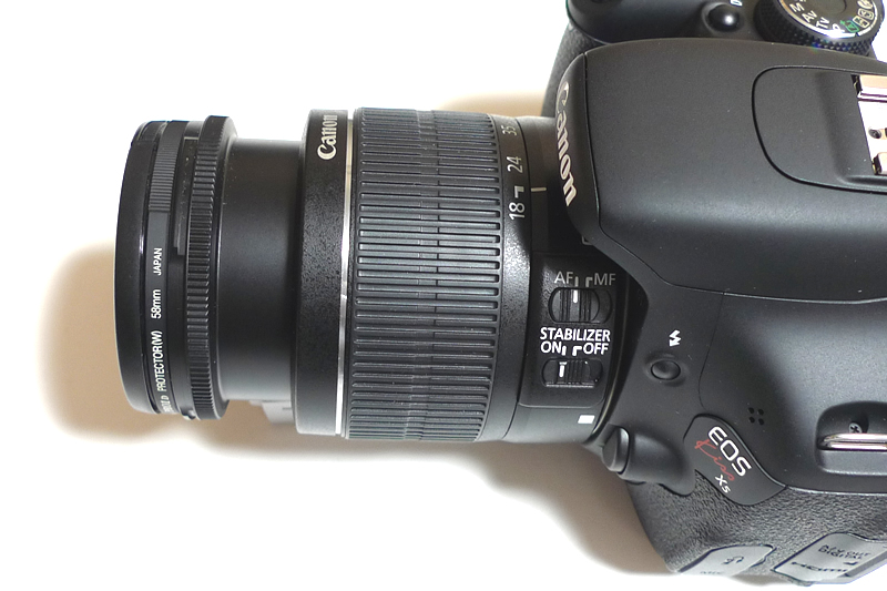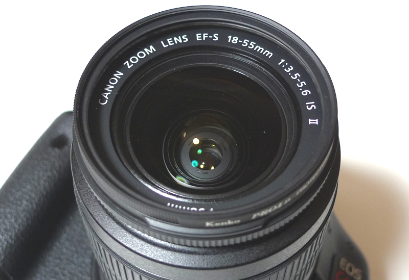 標準ズームレンズ「EF-S18-55mm F3.5-5.6 IS II」を装着した状態です。軽くて扱いやすいレンズです。