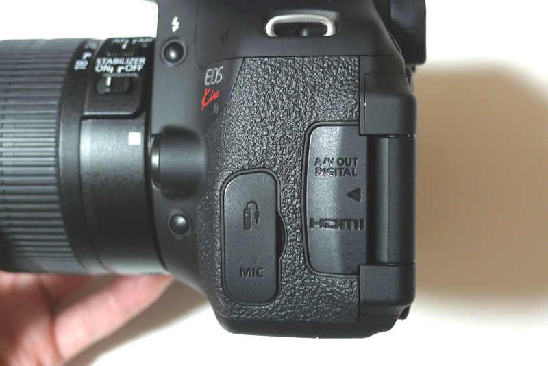 端子部分です。マイク入力やHDMI出力などがあり、動画撮影にも対応しています。