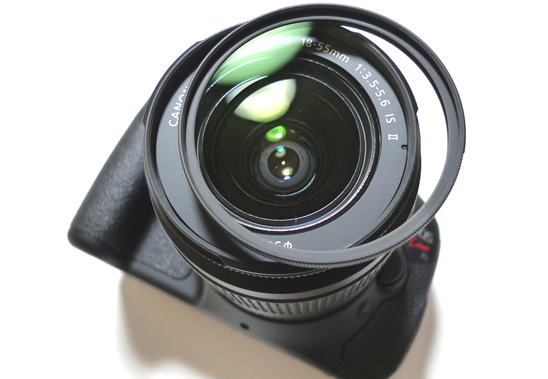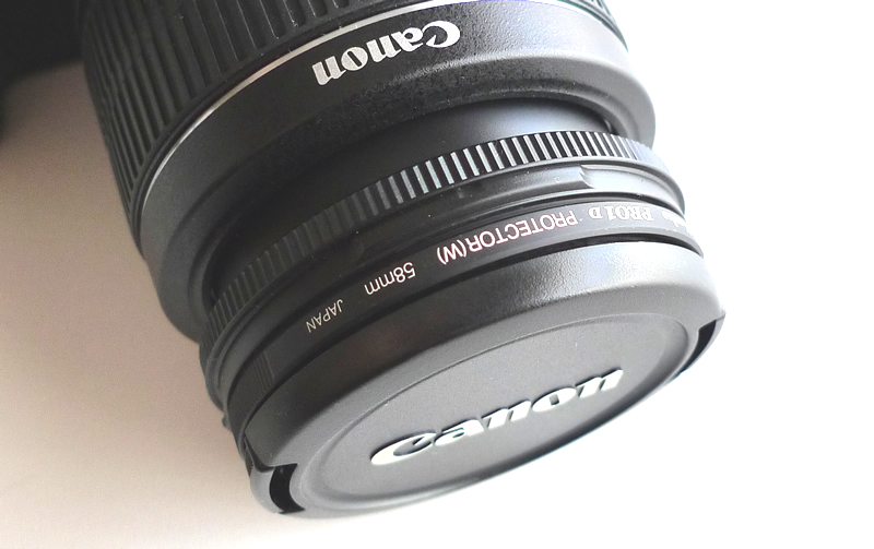 KenkoのPRO1 Digitalプロテクター(58mm)を用意しました。レンズを傷やホコリから守ってくれます。