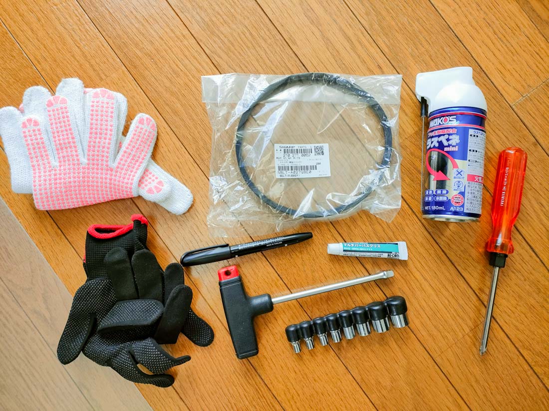 購入したから十数年以上経過しているので買い替えても良かったのですが、ネットで調べた所「Vベルト」という部品を交換すると、直る確率が高いとの事なので、ダメもとで挑戦してみました。
