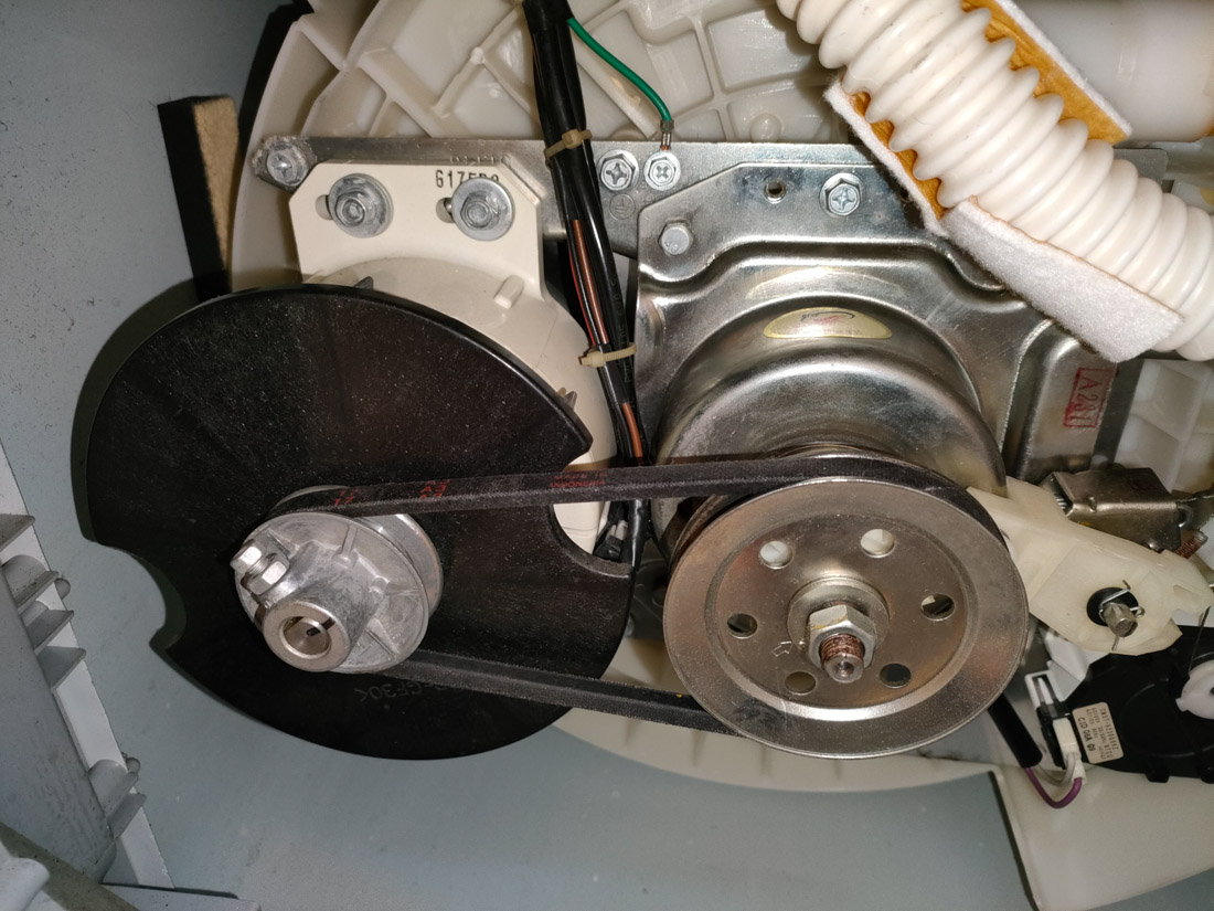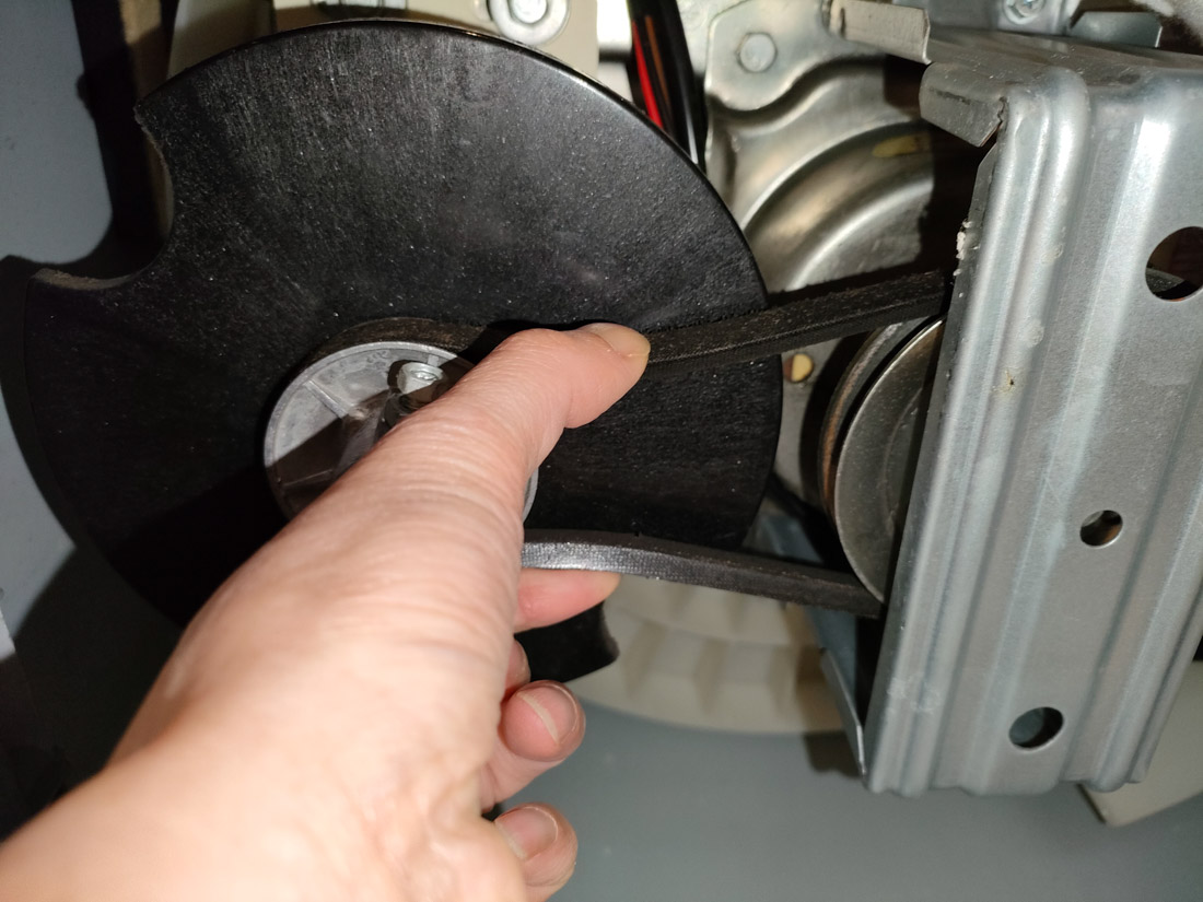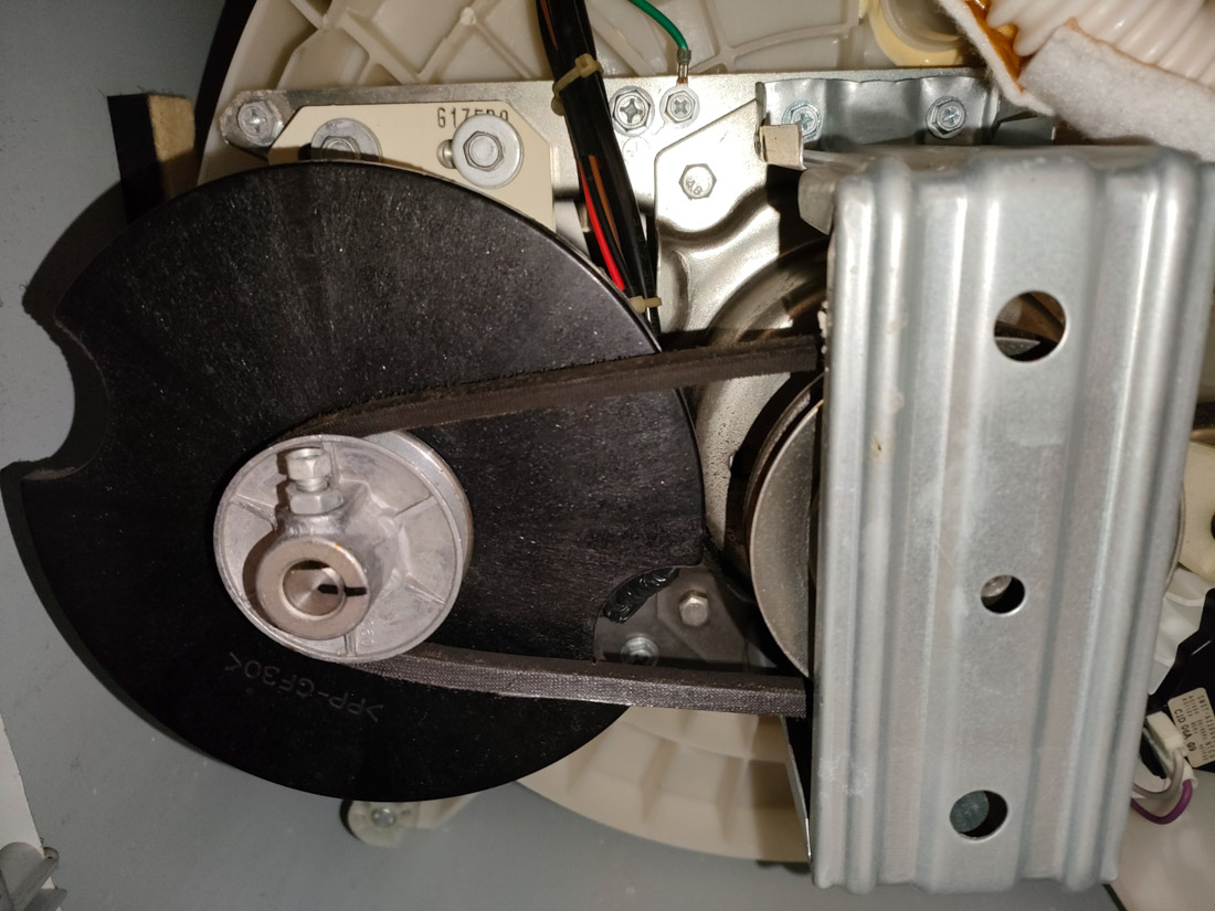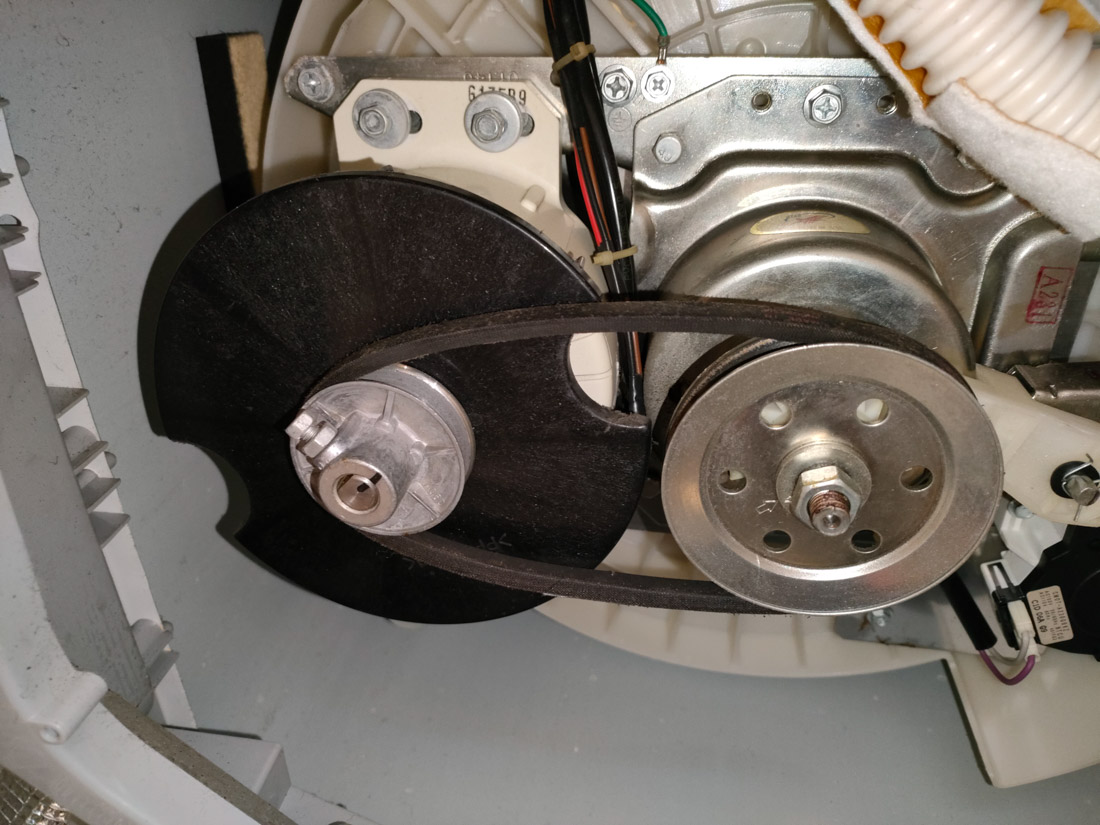 このベルト部分が音が出る原因のようです。ちょっとベルトがたわんでますかね?