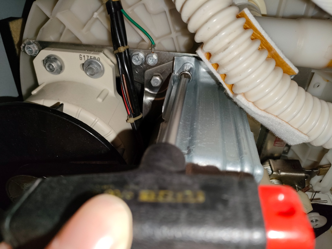 金属カバーを外してモーター部分の位置をずらすために、ネジを緩めます。