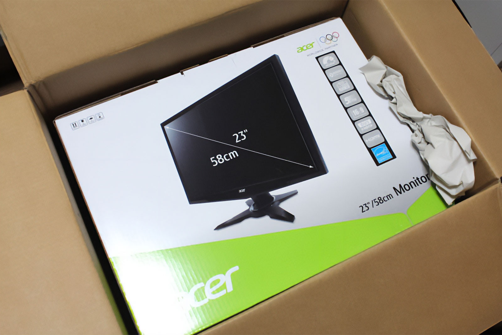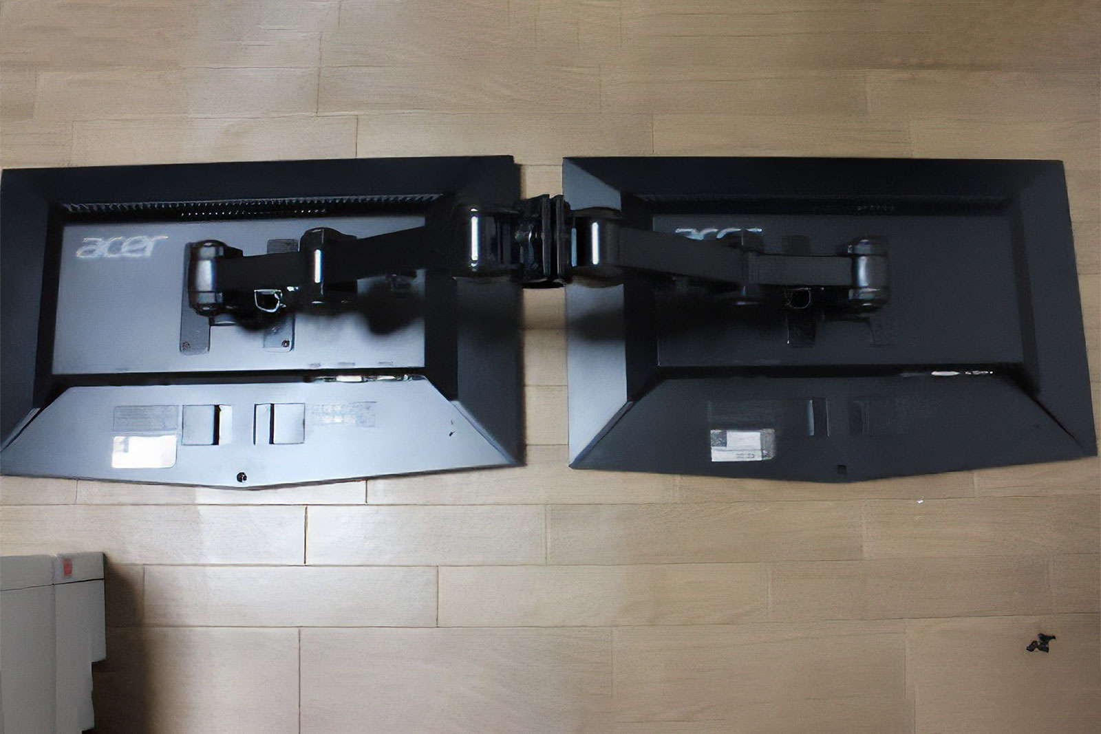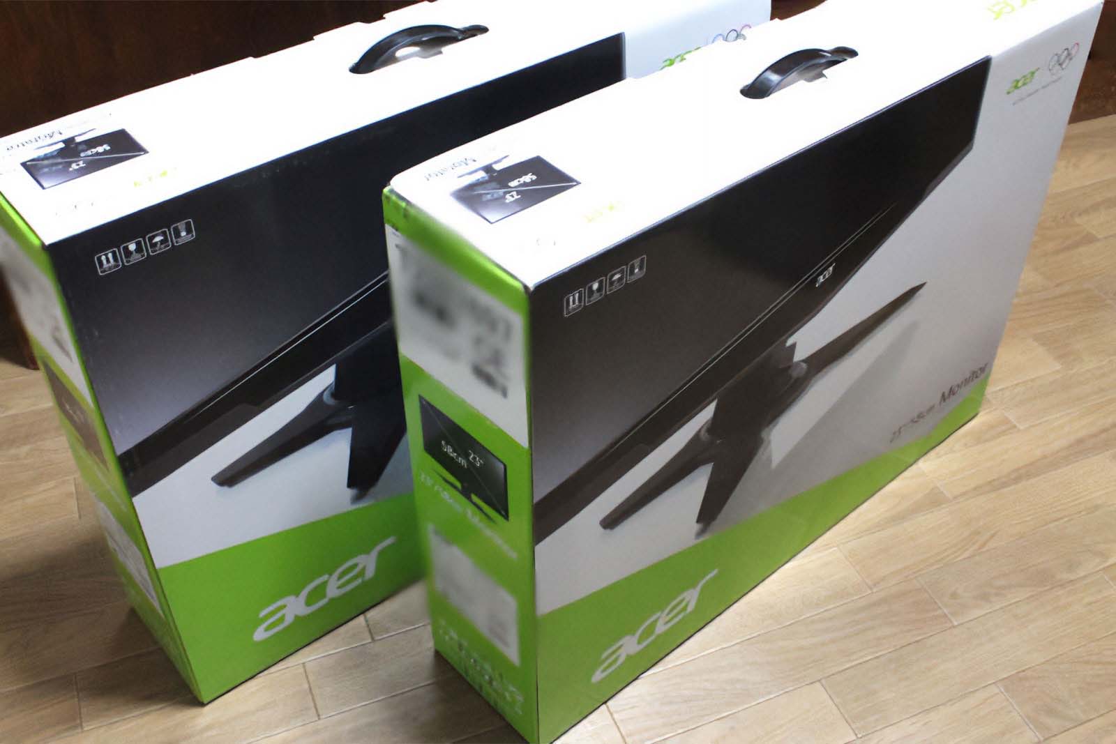 すでに2台のモニターを使っていましたが、さらに作業スペースを広げるため、追加で2台のモニターを購入してもらいました。写真は新しく届いたacerのモニターです。