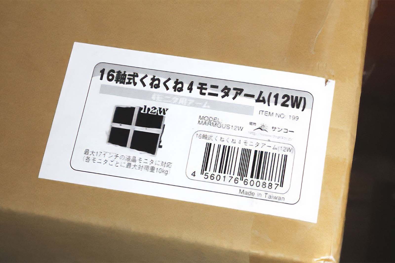 購入したモニターアームは「16軸式くねくね4モニターアーム」というモデルです。4台のモニターを上下2段で設置できるタイプで、位置や角度を細かく調整できるのが特徴です。
