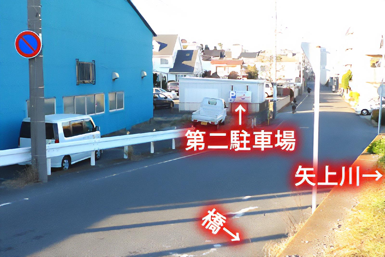 店前の駐車スペースが満車のときは、第二駐車場が利用できました。横浜方面から川崎方向へ進み、矢上川の手前を左折するとすぐの場所にあります。
