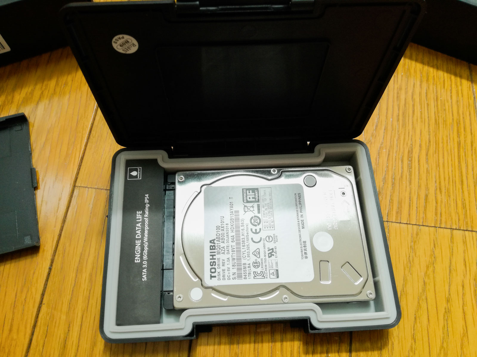 ハードディスクケースを衝撃吸収タイプに交換したことで、バックアップ用の記憶装置として安全性が一段と高まりました。