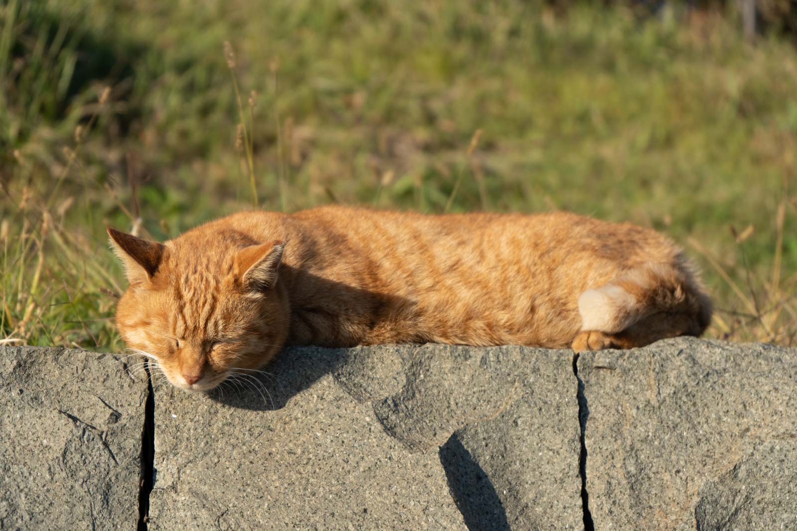 公園の奥にも猫がいました。石の上で気持ちよさそうに寝そべっています。