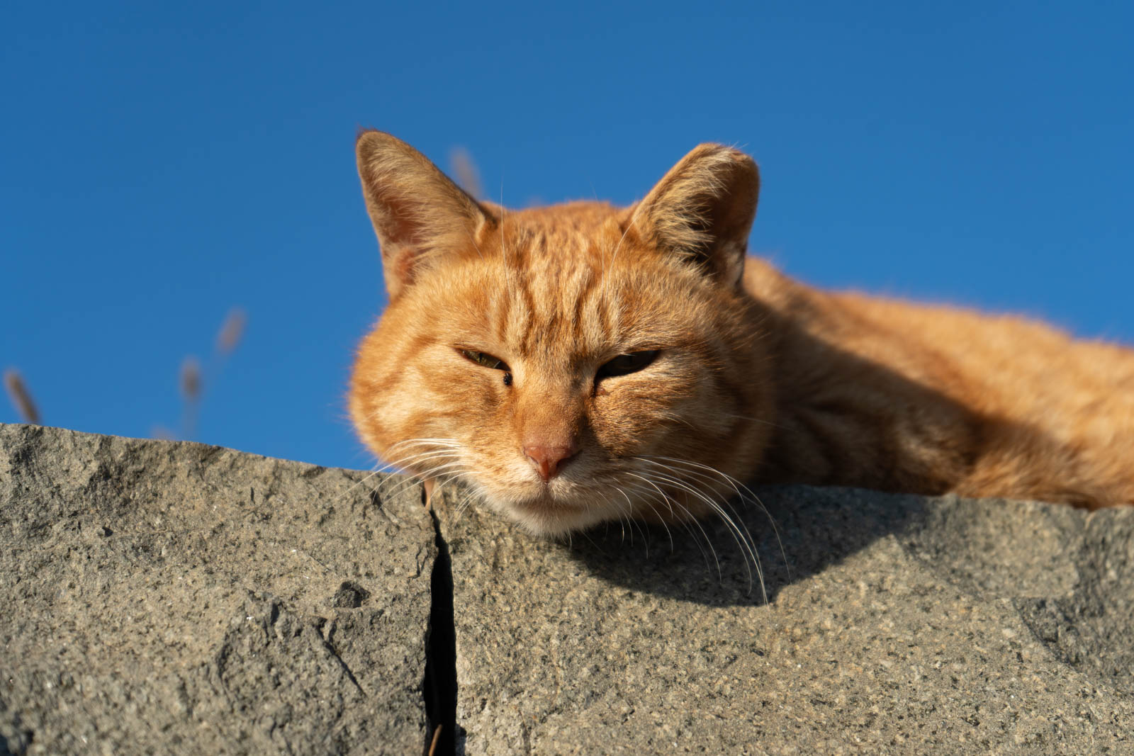 撮影していると、猫がゆっくりと顔をこちらに向けました。眠そうな目を細めながらも、どこか穏やかな表情です。