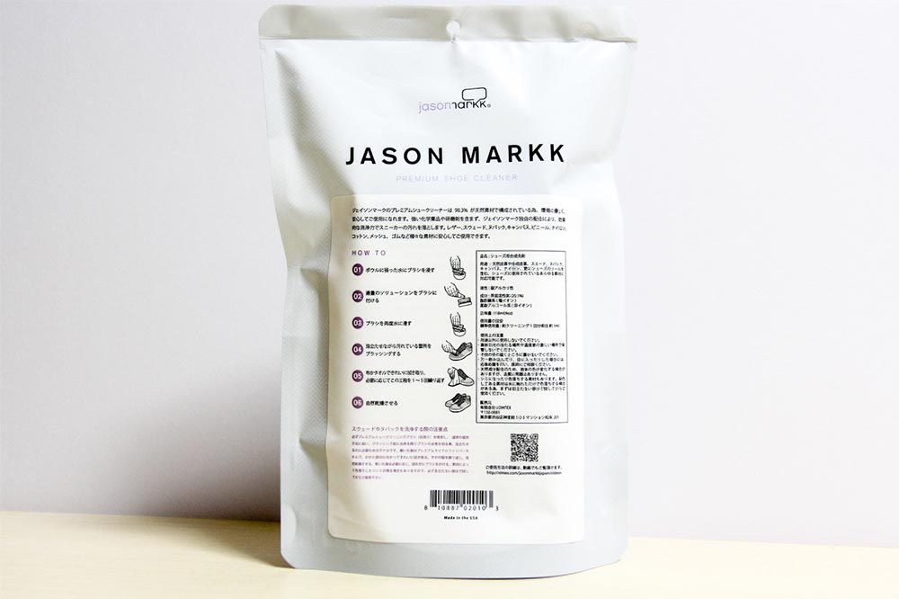 JASON MARKKのパッケージ裏側。日本語による説明書きのシールが張られています。