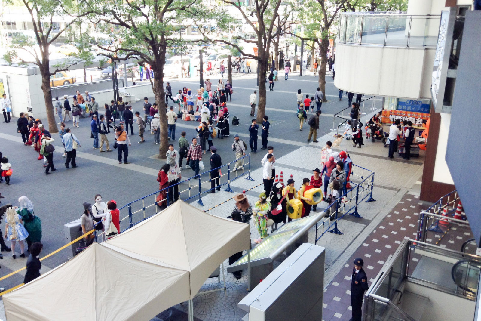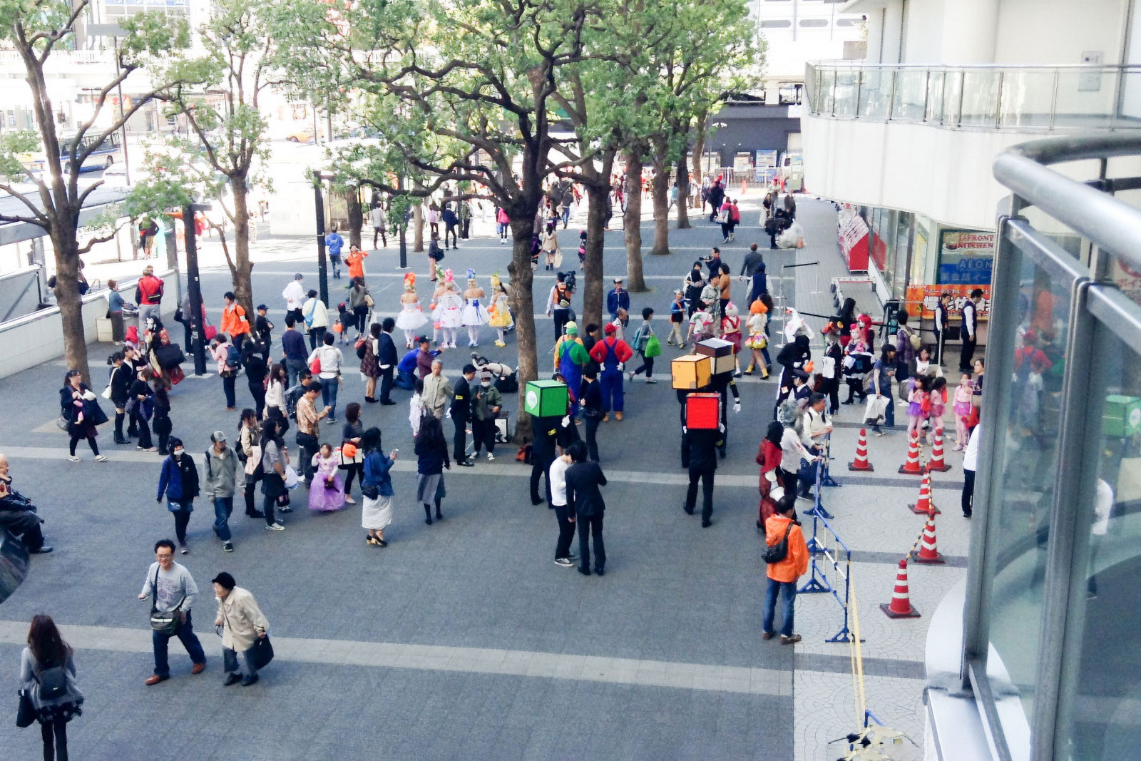 カメラを構えたテレビ局のスタッフも見かけました。広場には子どもから大人まで、さまざまなコスプレ姿の人たちが集まっています。