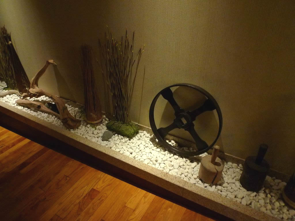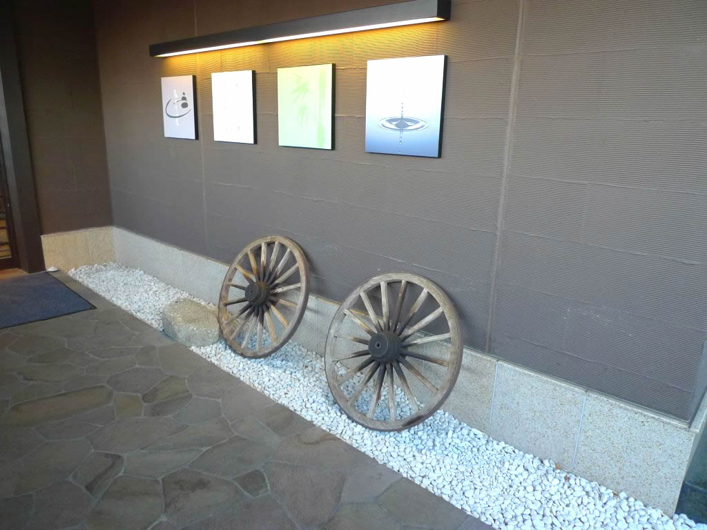 入口から脱衣場までの通路には、落ち着いた雰囲気のインテリアが並びます。