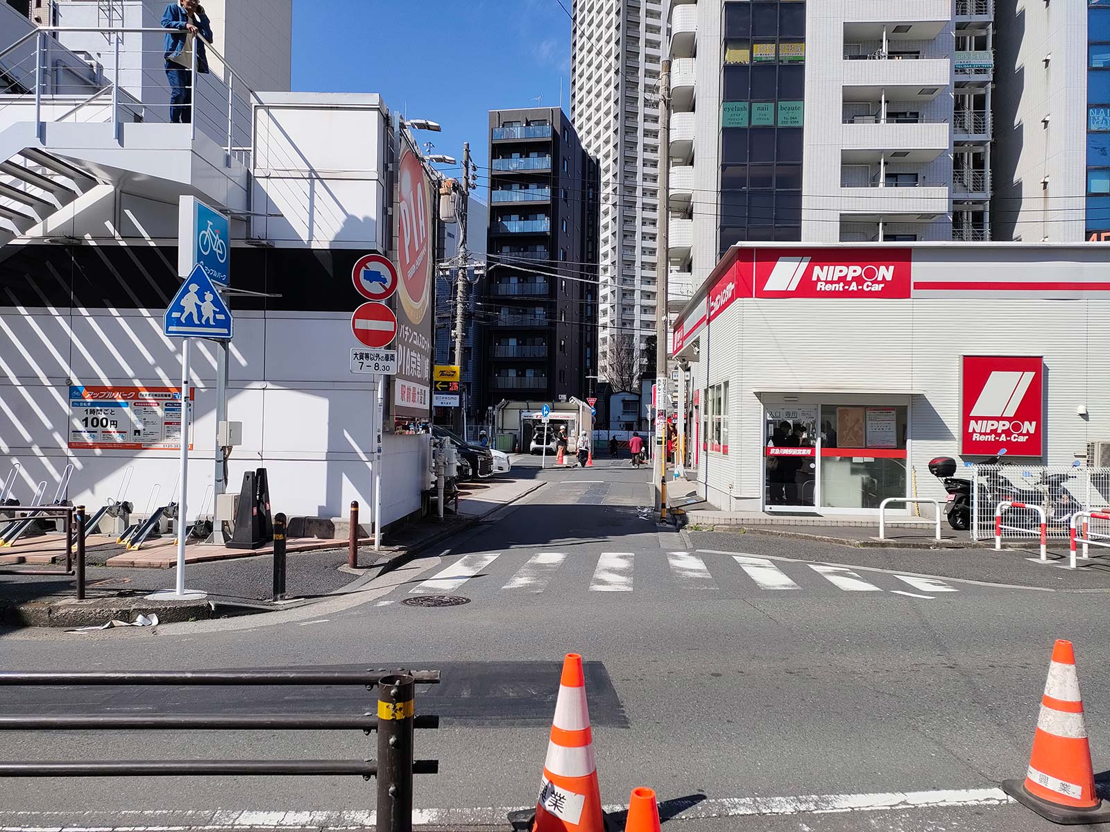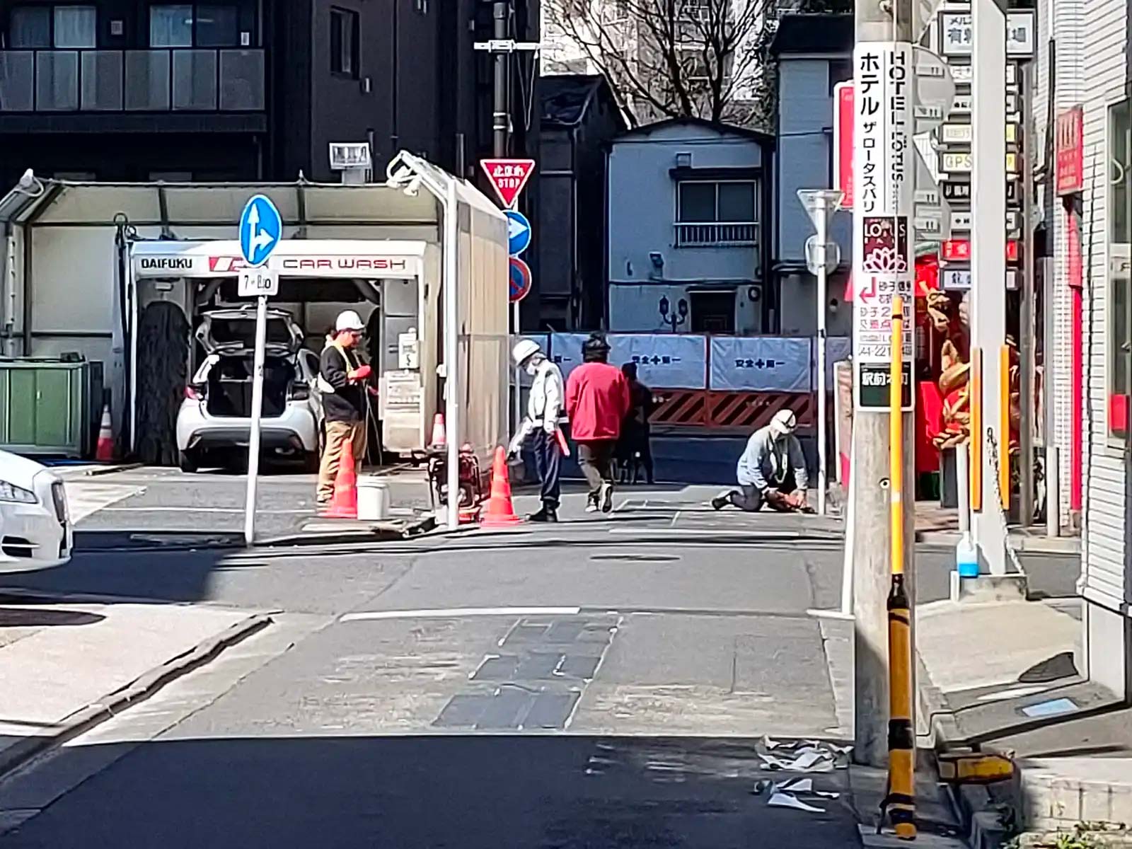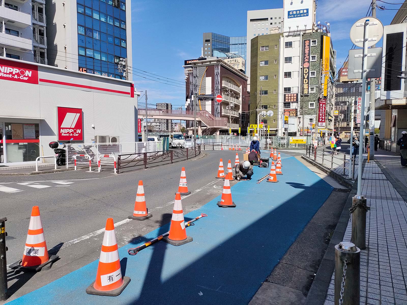 パチンコ屋とレンタカー屋の間にある、逆方向に向かう道も工事していました。