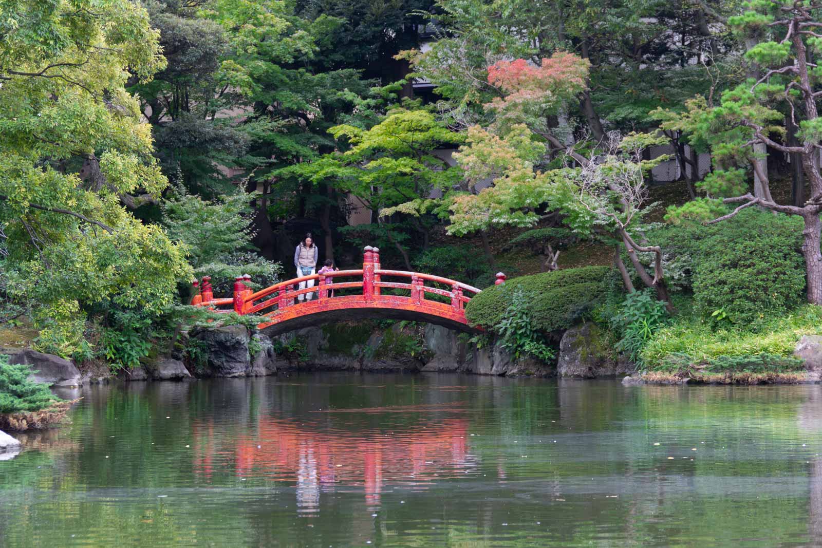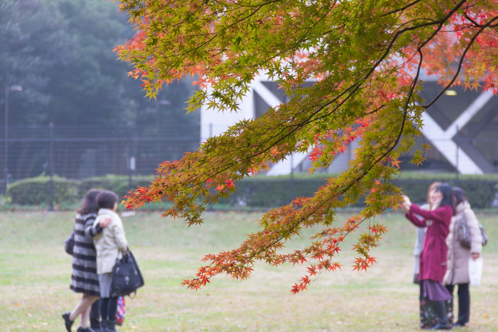 紅葉の下では、女性グループが楽しそうに写真を撮っていました。笑い声が庭に広がり、秋の午後らしい穏やかな時間が流れていました。