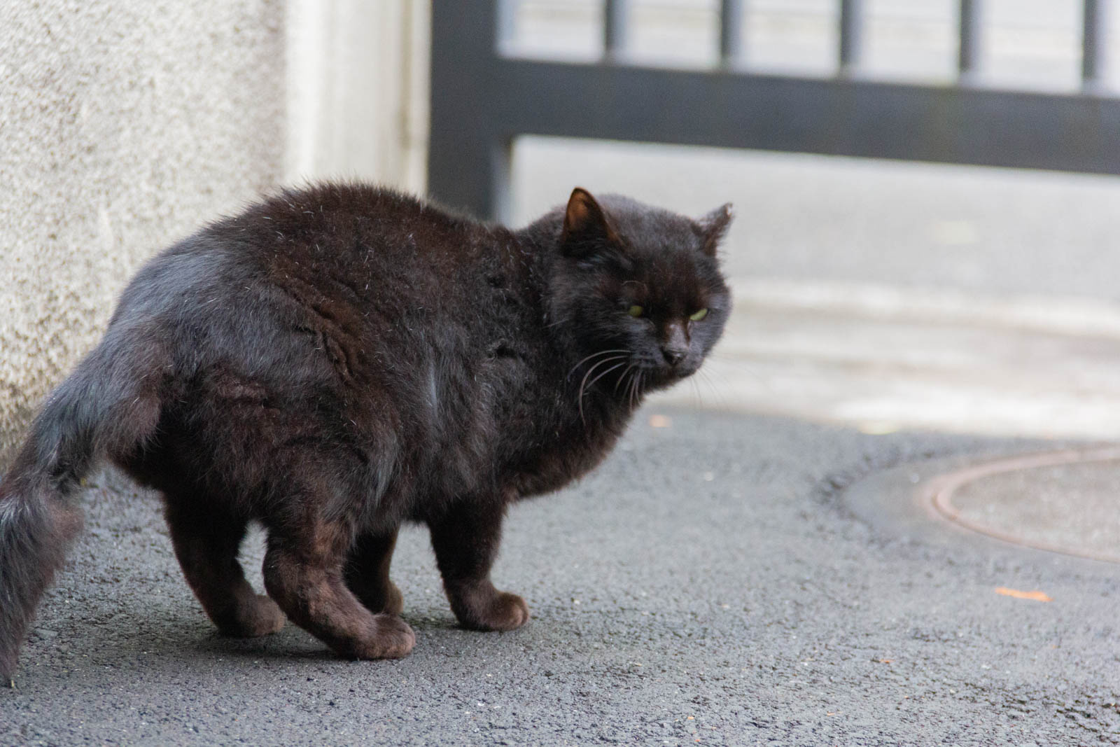 しばらく見つめ合っていると、猫はゆっくりと歩き出しました。それでも途中で立ち止まり、もう一度こちらをじっと見つめてから去っていきました。