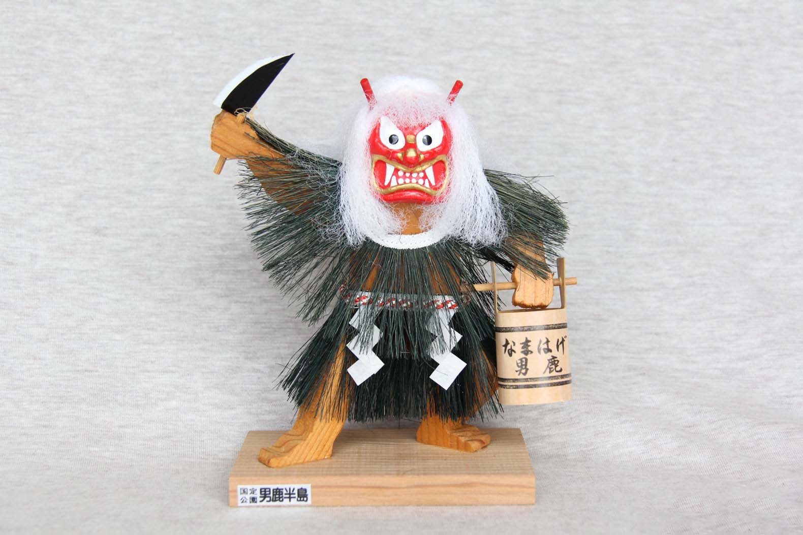秋田県男鹿半島のなまばげの置物 2014.01.18 鬼のお面右手に包丁、左手に酒桶を持った男鹿半島のなまはげ。 1992年(平成4年)、8月10~13日。 秋田県男鹿半島かんぽ保養センターへ行った時のなまはげのおみやげ。