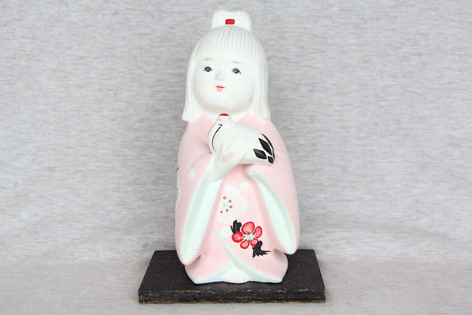 白井さんから頂いた、鳩を抱える女の子の瀬戸のも人形。