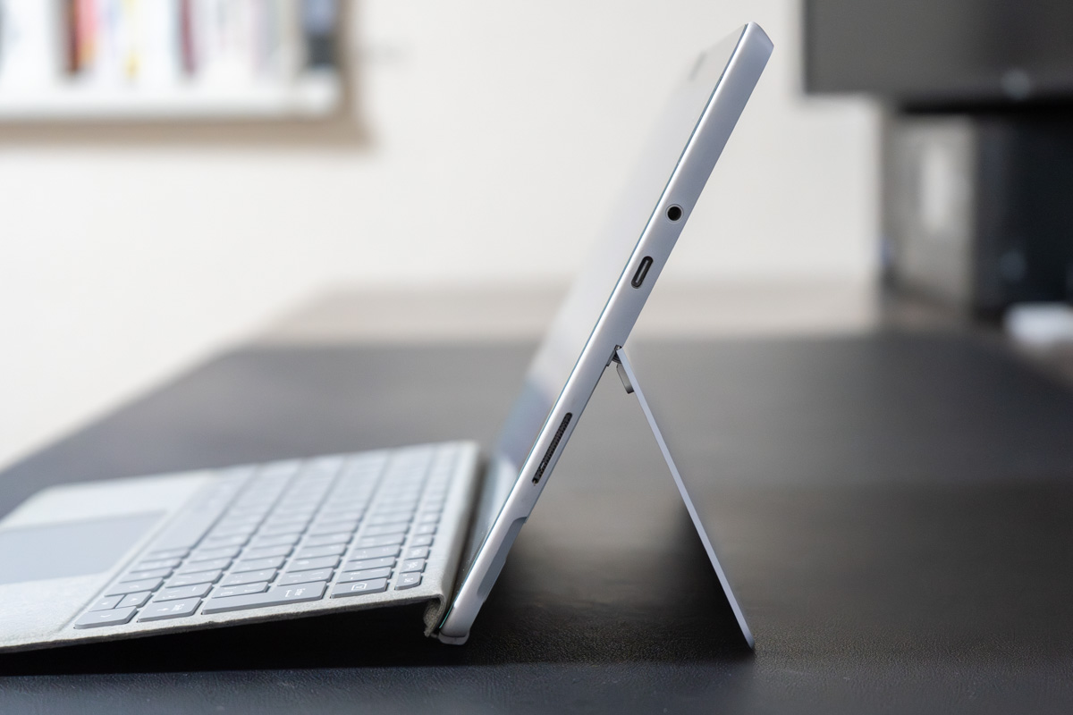 本体側面には「イヤホンマイク端子、USBType-C、専用のSurfaceConnect端子」が搭載されており、充電や外部機器の接続にも対応しています。
