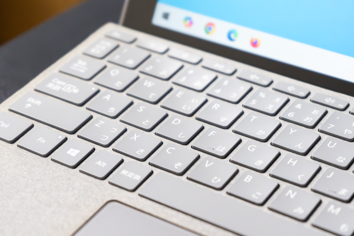 ただし、画面サイズが10インチと小型なため、キーボードも全体的にひと回りコンパクトな作りになっています。
