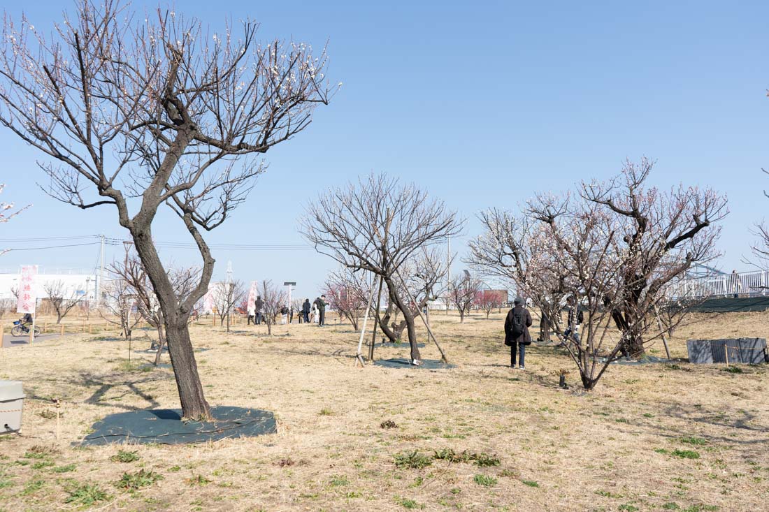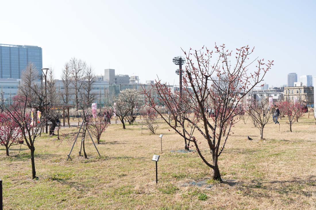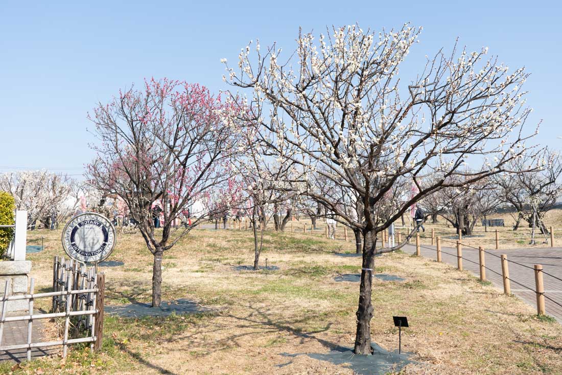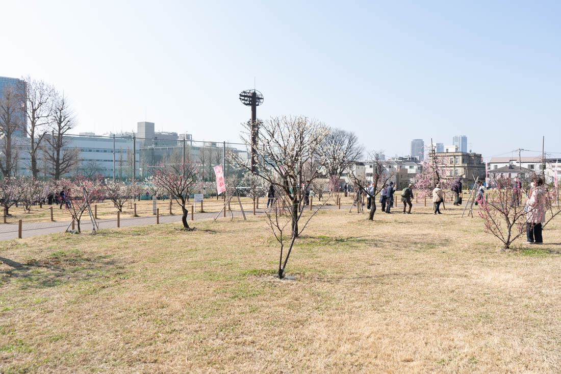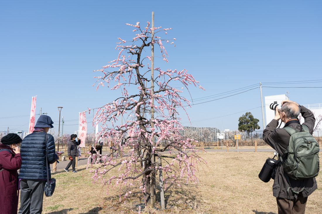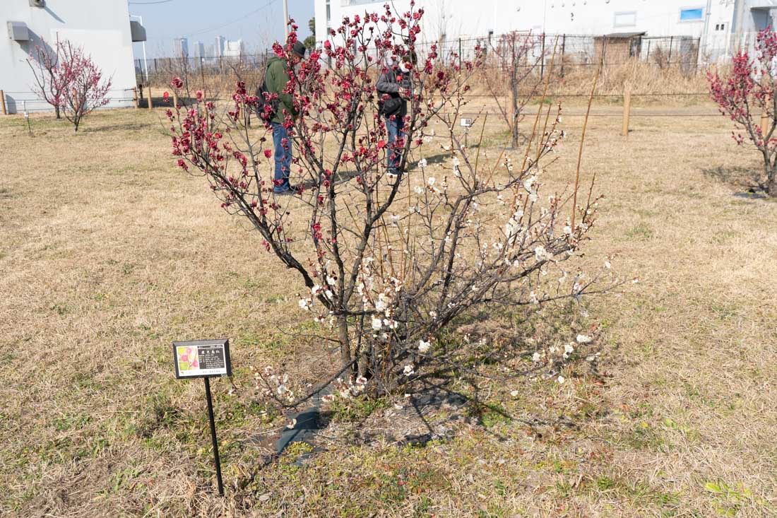 園内で一番人気の梅の木です。この梅の木は、毎年園内で比較的早く花を咲かせ、高さもあるため、一番見栄えがよく写真を撮る人たちで人が集まっていました。