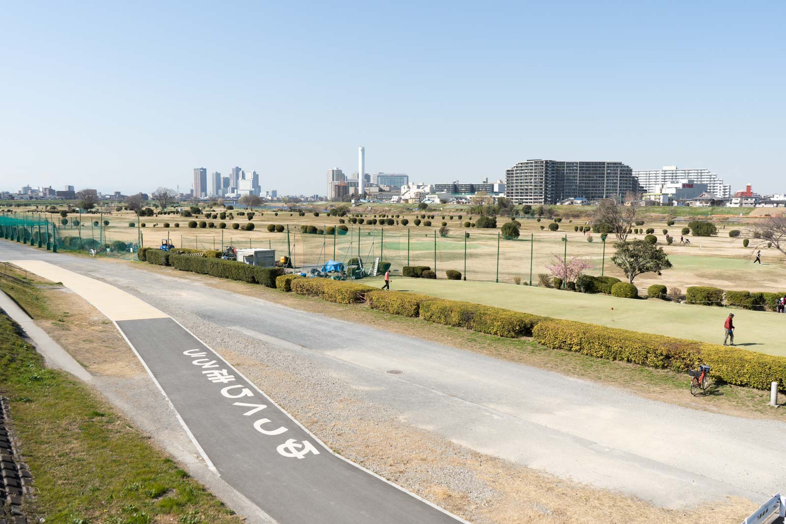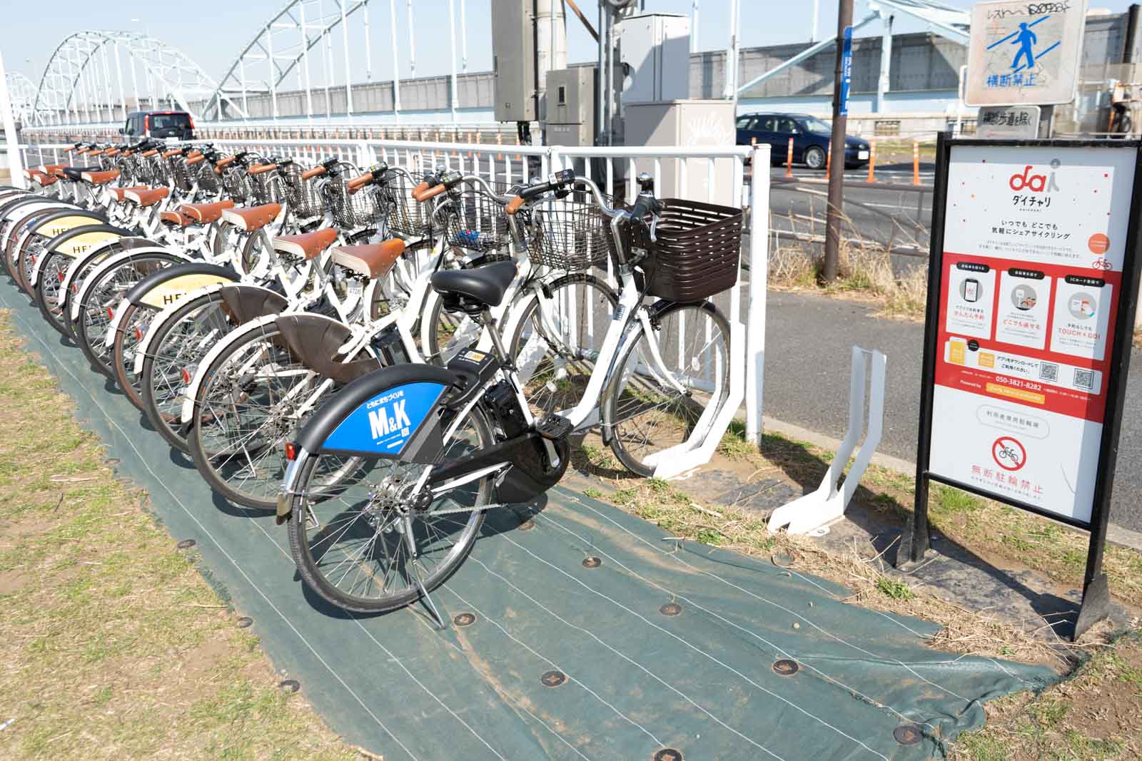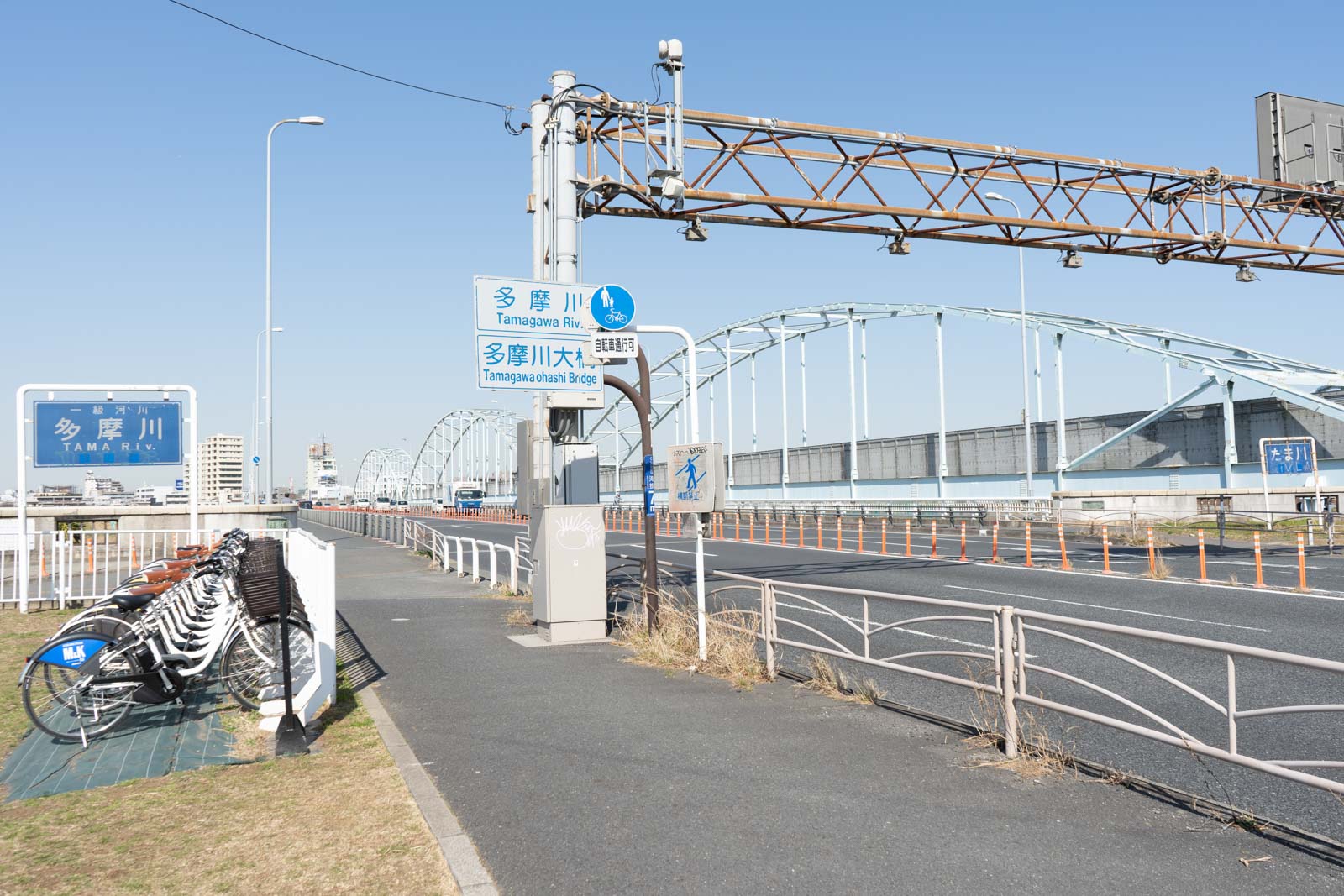 レンタル自転車の貸し出しスペースのすぐそばには、多摩川大橋があります。