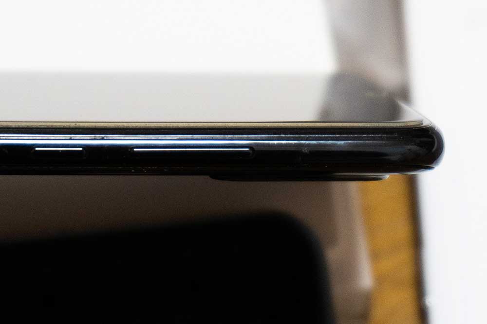 本体側面には音量ボタンと電源ボタンが配置されています。フレームは丸みを帯びた形状で、手に持ったときに指が自然にフィットします。