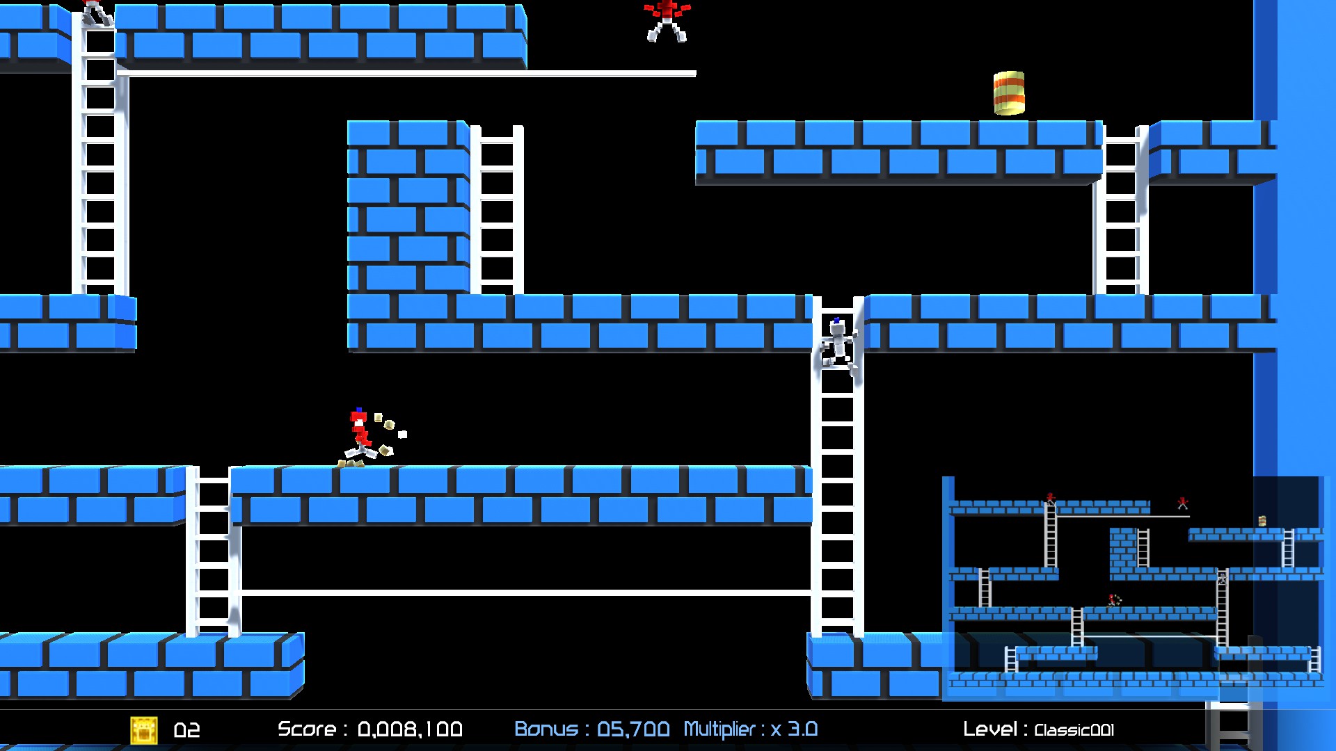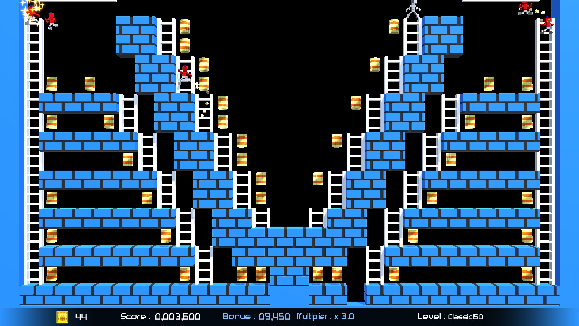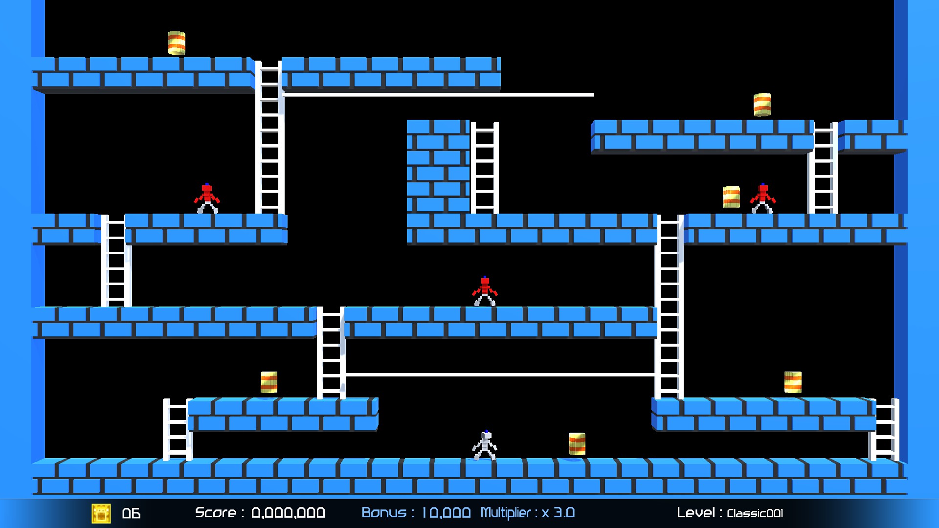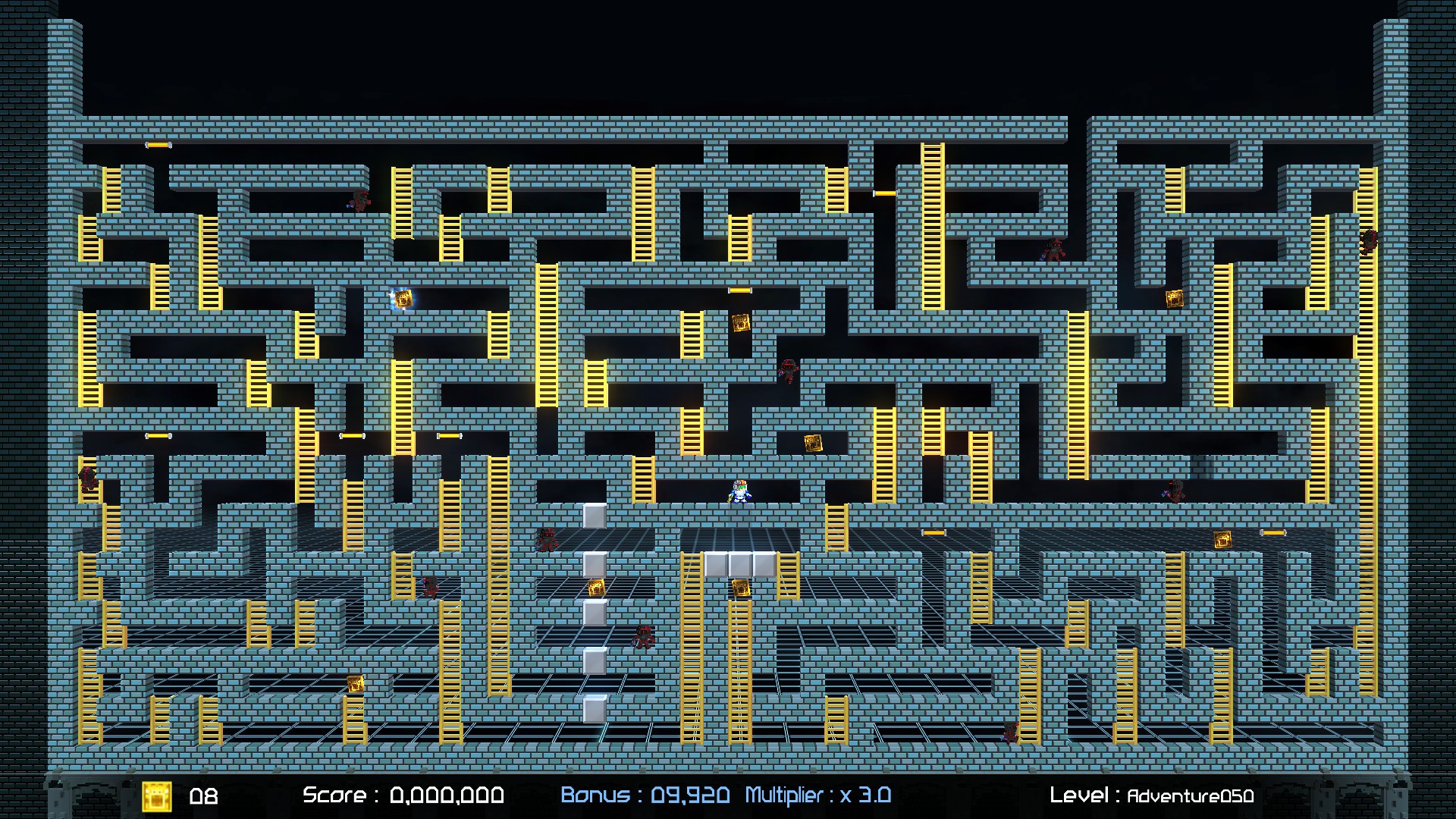 ブロックを掘って敵をかわしながら金塊を集め、全て取り終えたら出口へ向かうアクションパズルゲームです。敵を倒す攻撃手段はなく、地形を利用して逃げる“頭脳戦”になり「最適なルート・タイミング・判断力」が試されます。