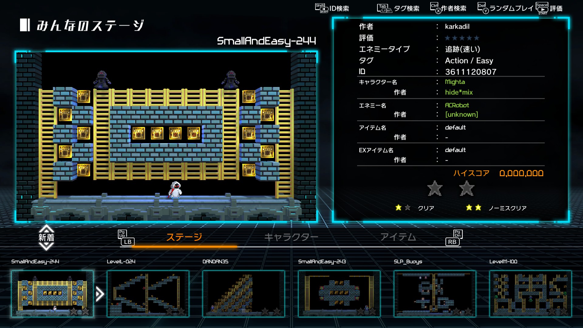 「みんなのステージ」では、他のプレイヤーが作成したオリジナルステージを選んで遊ぶことができます。