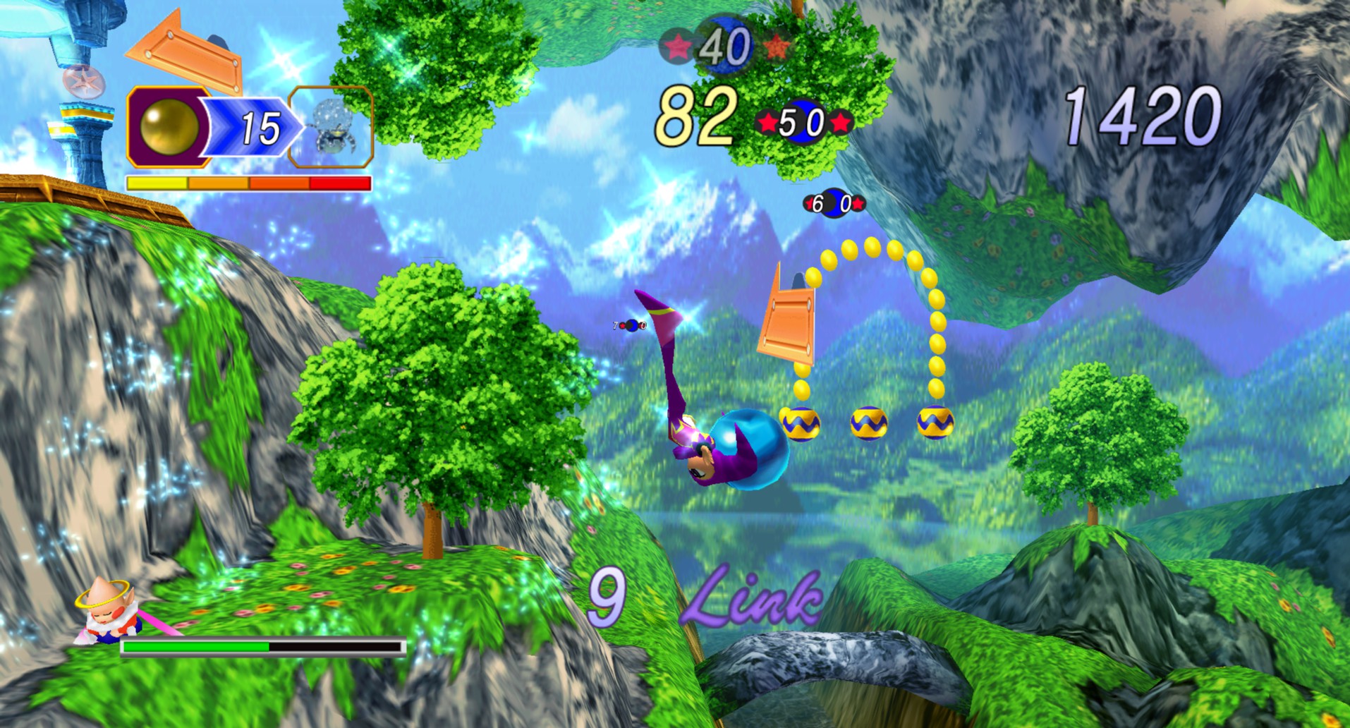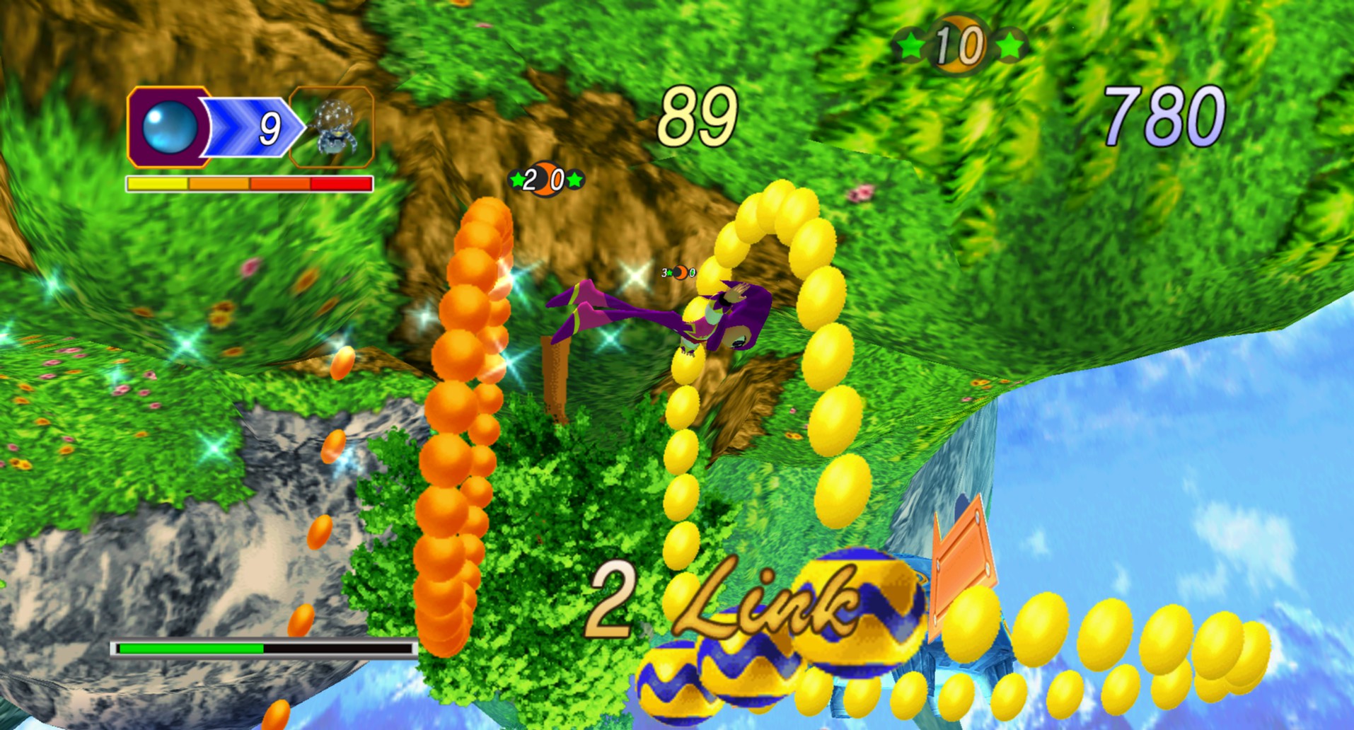 夢の世界“ナイトピア”を舞台に、主人公の子どもたちがナイトメアの脅威に立ち向かうアクションゲームです。プレイヤーは空を自由に舞う存在“ナイツ”となり、リングをくぐり抜けたり、スピーディに旋回しながらステージを巡ります。