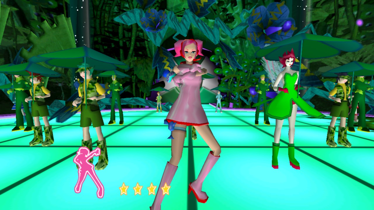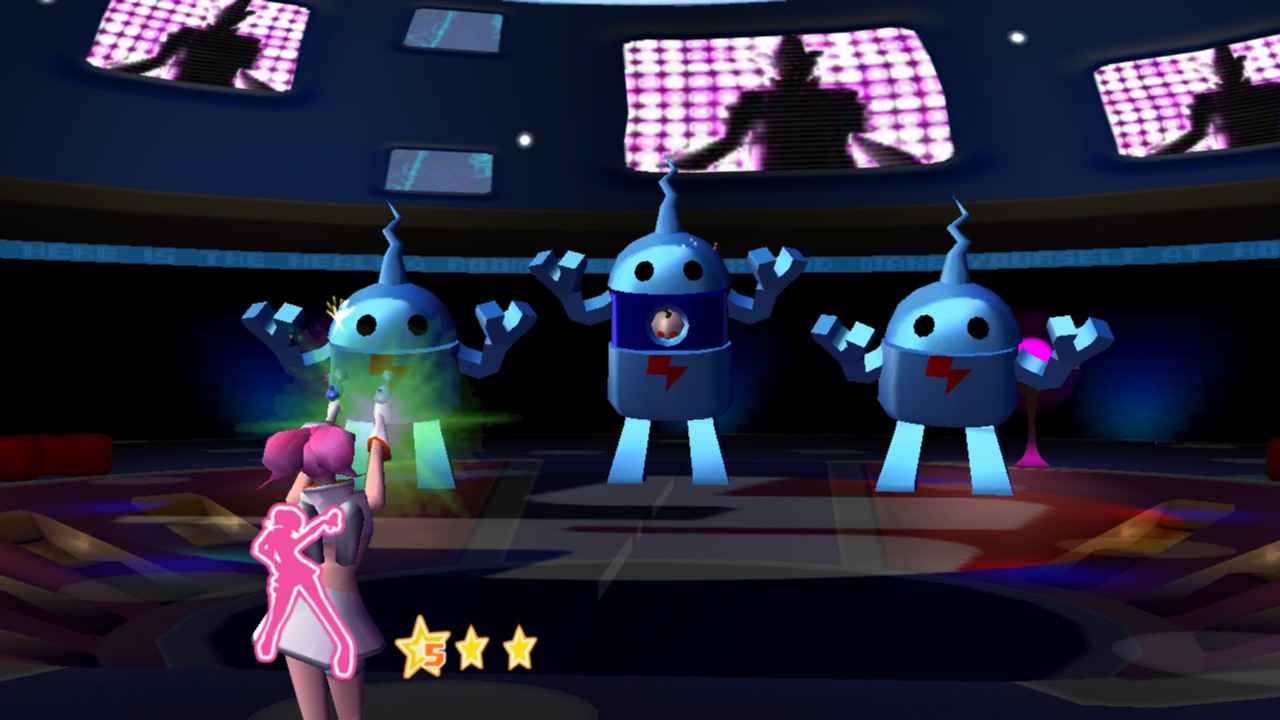 プレイヤーは「アップ!」「ダウン!」「チュー!」「ヘイ!」といった指示に合わせて操作し、次々と展開するダンスバトルをクリアしていきます。