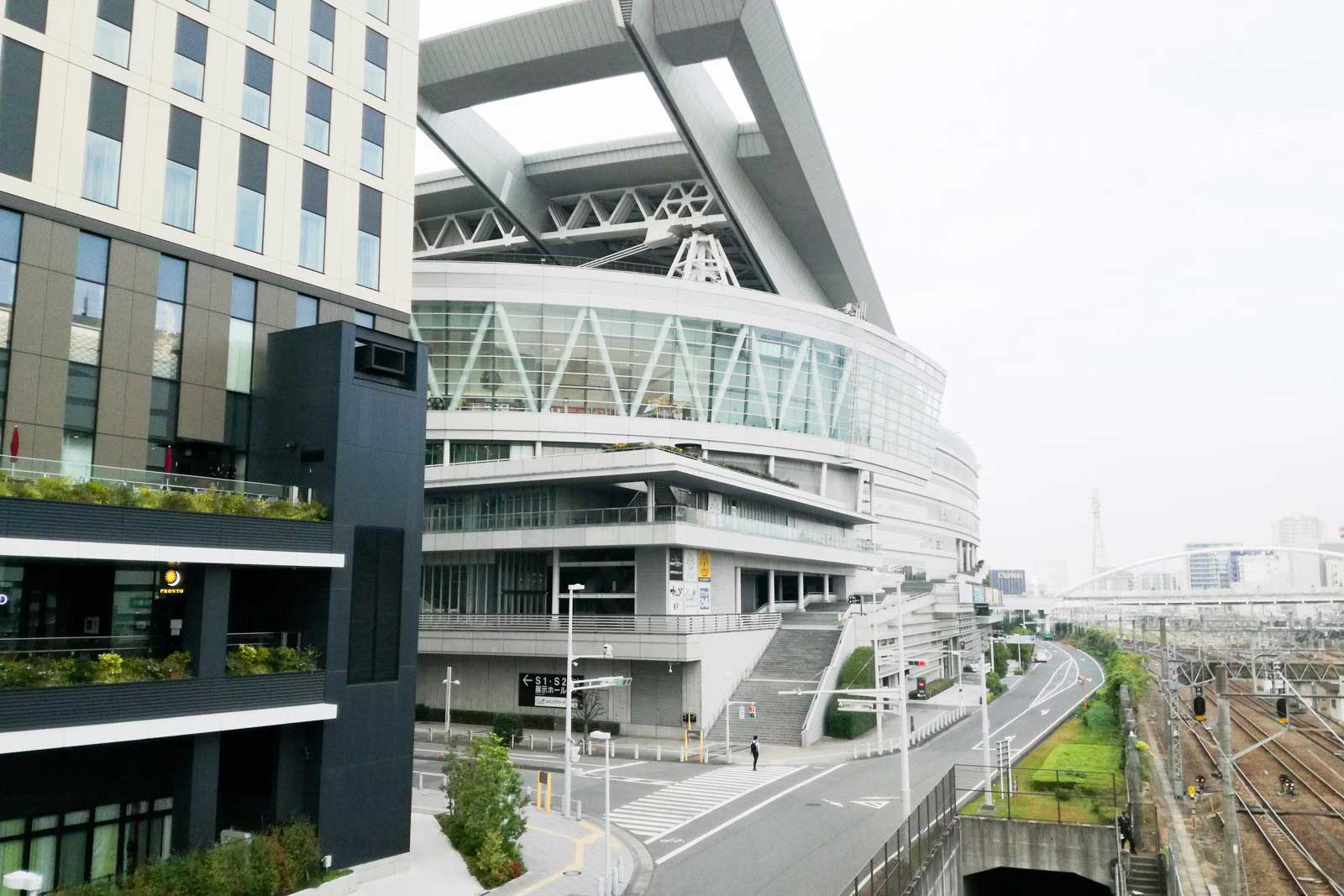 改札を出て右側に行くと、ヨドバシやショッピングモールが見えます。