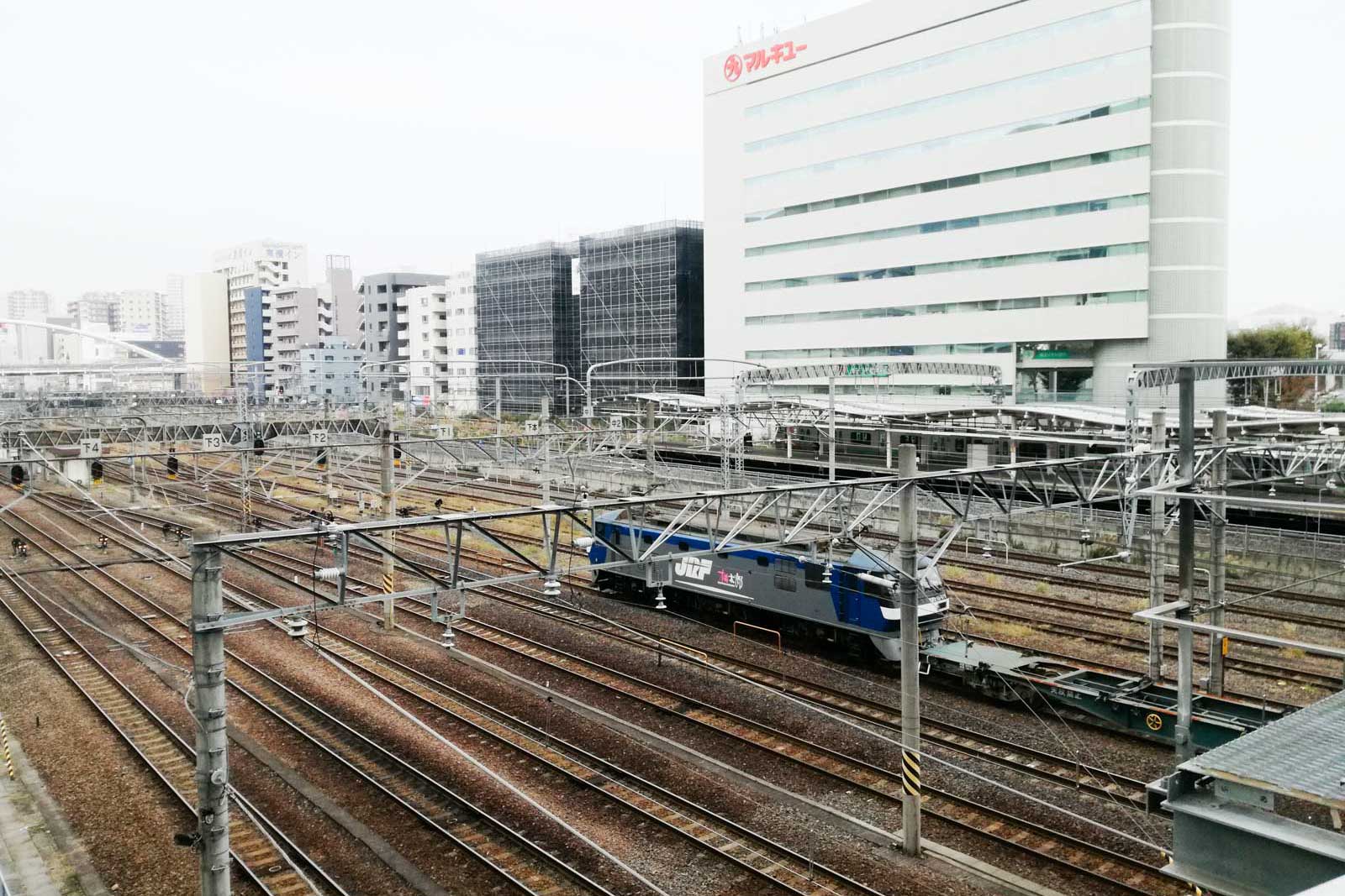駅に戻って左側に行きます。貨物列車が走ってます。