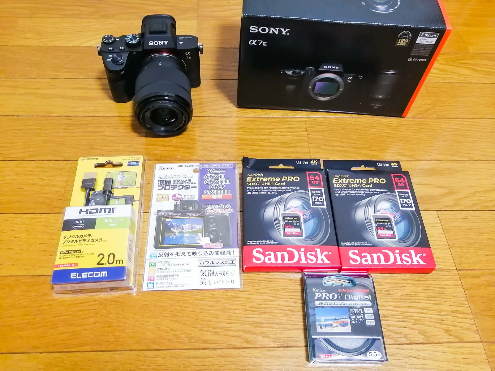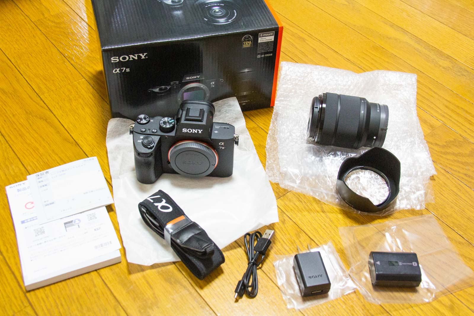 α7III(ILCE-7M3K)ズームレンズキットを開封した様子です。