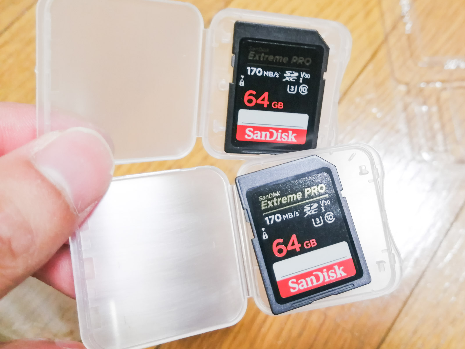 撮影データ保存用にSanDisk Extreme PRO 64GBのSDカードを使用しています。