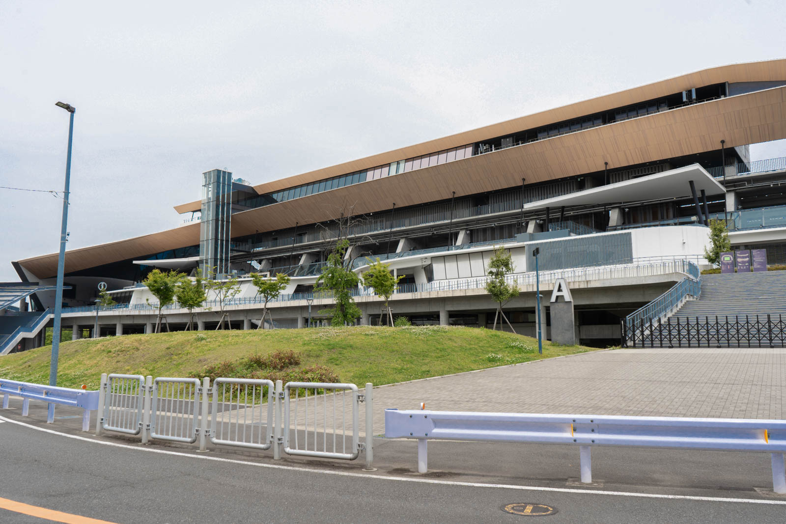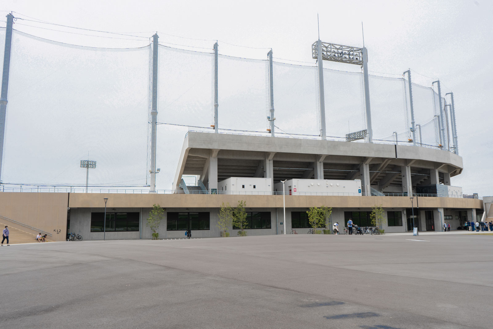 リニューアルされてから外観もとてもきれいになり、木目調の屋根が印象的です。スタンドの周りは広々としていて、試合がない日でも散歩しやすい雰囲気です。