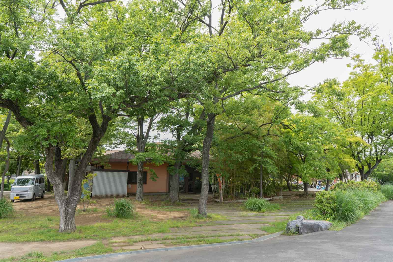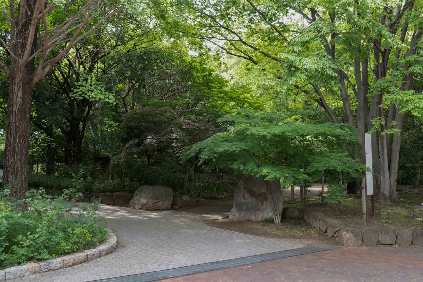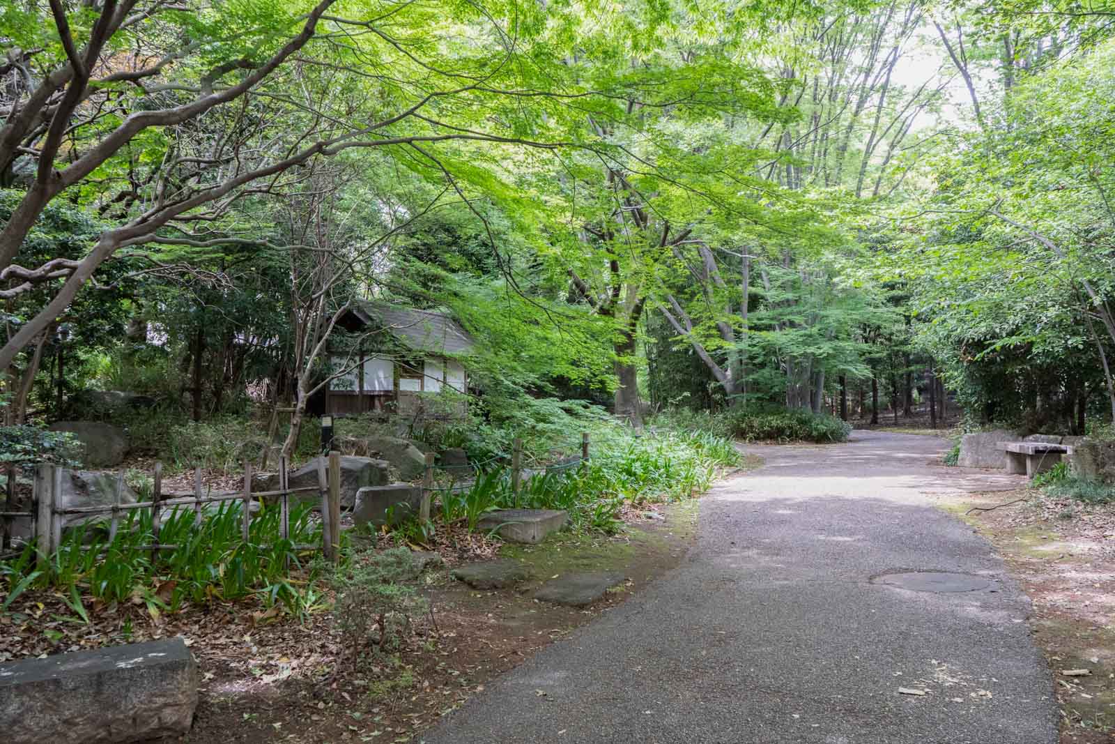 庭園の中を歩いていきます。木々に囲まれ、新緑の季節には葉のあいだから差し込む光がとてもきれいで、ゆっくり散歩するのにぴったりの場所です。