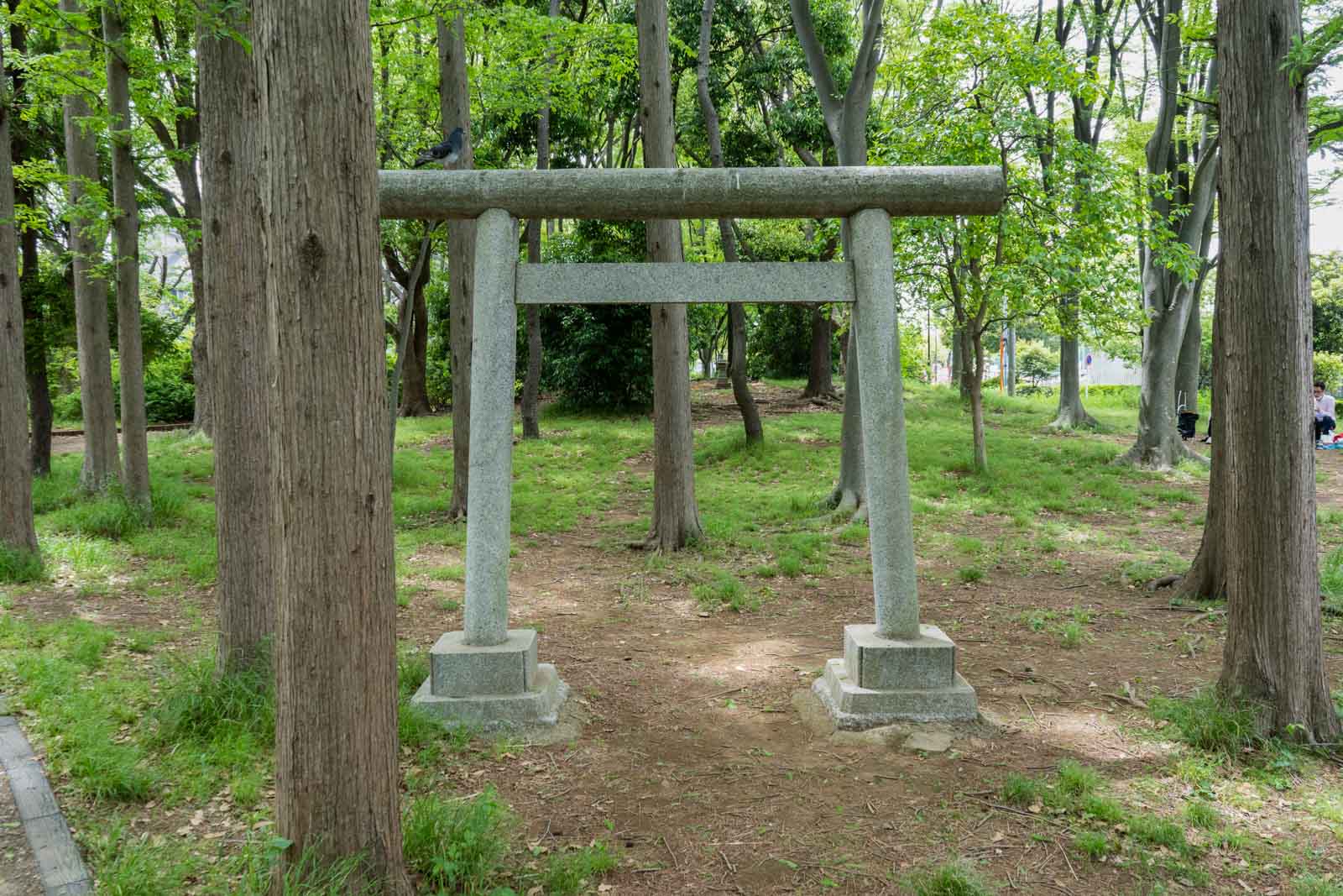 森の奥へ進むと、等々力山神祠があります。木々に囲まれた小さな社で、静かな空気に包まれた場所です。