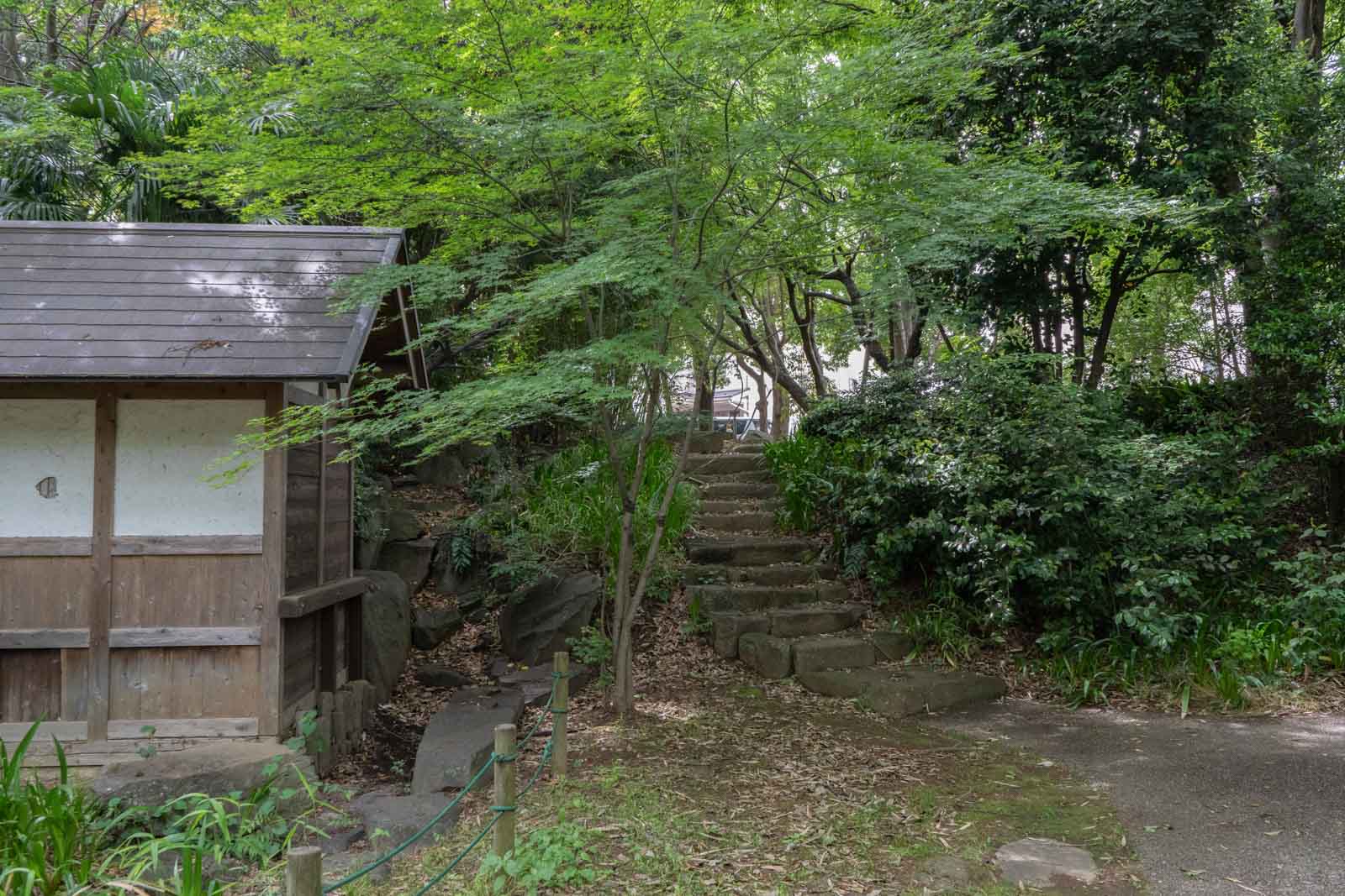 庭園の奥にある石段を上ると、一般道へと出ます。緑に包まれた静かな小道から、ふっと日常に戻るような感覚でした。