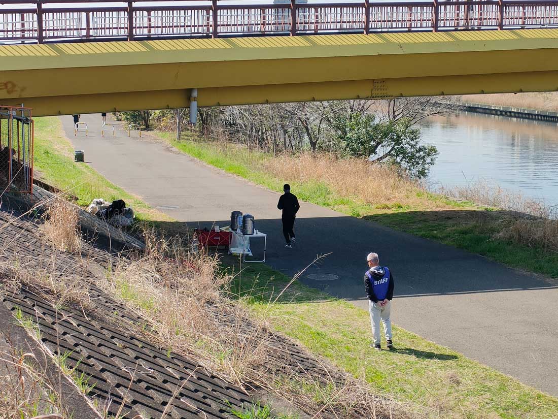 鶴見川ではマラソン大会が行われていたようで、給水所が設けられていました。