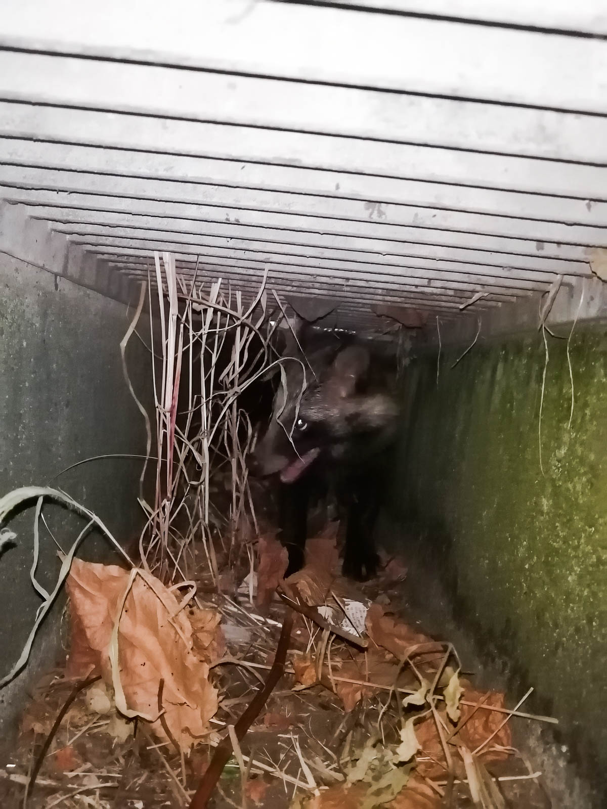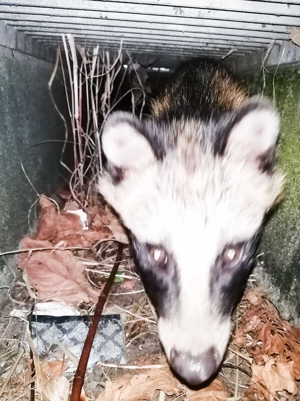 試しにスマホをそっと排水溝に入れて撮影してみたところ、なんとタヌキでした。まさかこんな街中の川沿いでタヌキに出会うとは思ってもみませんでした。