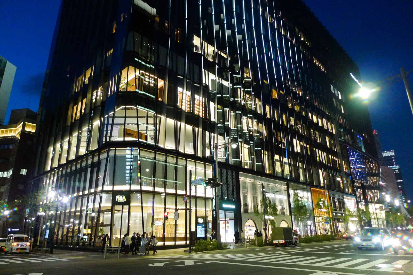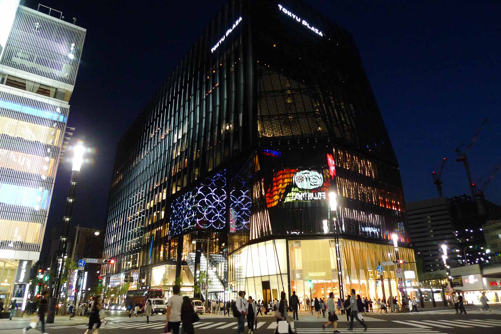 夜になり銀座に移動しました。最近開業した、数寄屋橋交差点前にある東急プラザ銀座(以前の銀座東芝ビル)です。