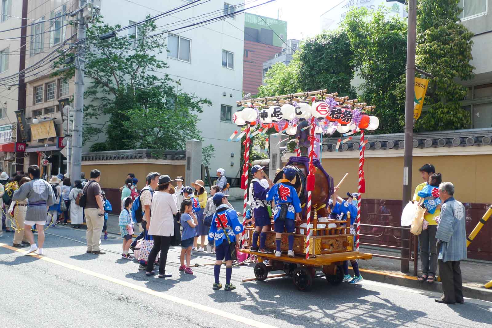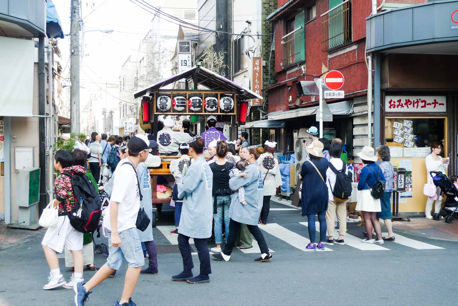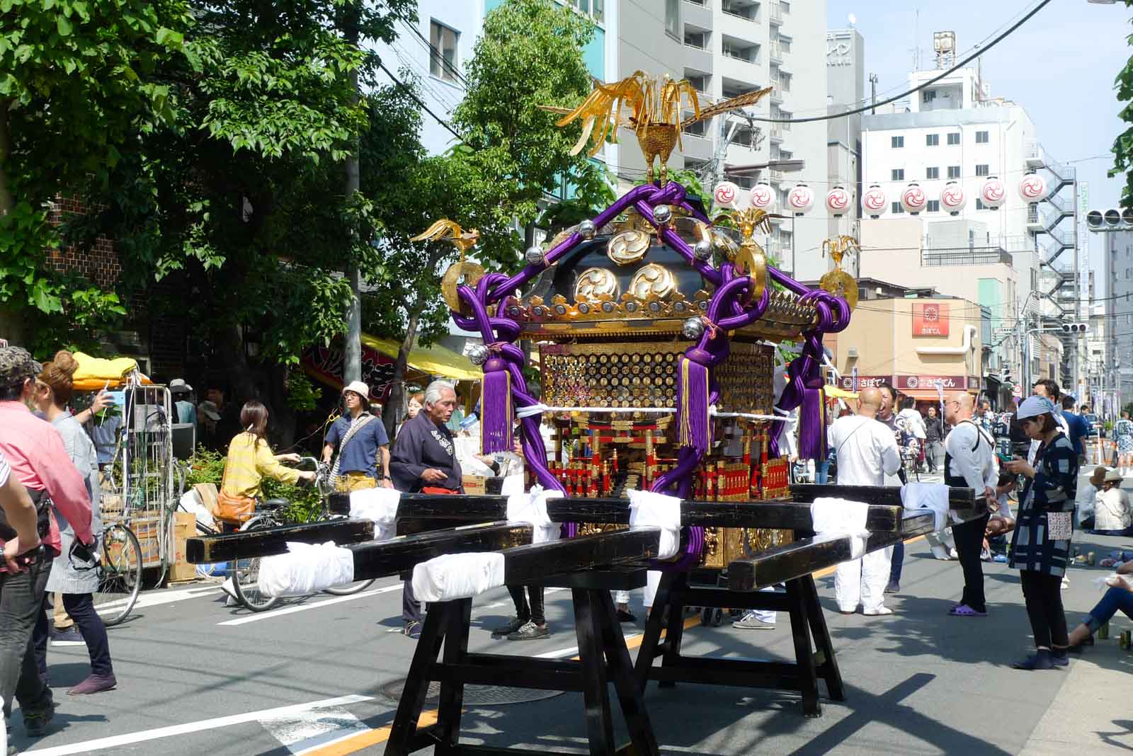 上野から歩いて浅草まで向かいます。その途中、入谷にある小野照崎神社で子供みこしと出会いました。