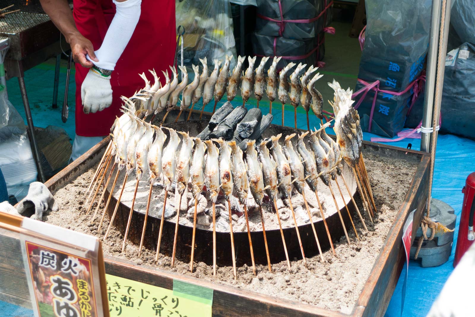 そして、こちらは炭火で焼いた鮎の塩焼き。