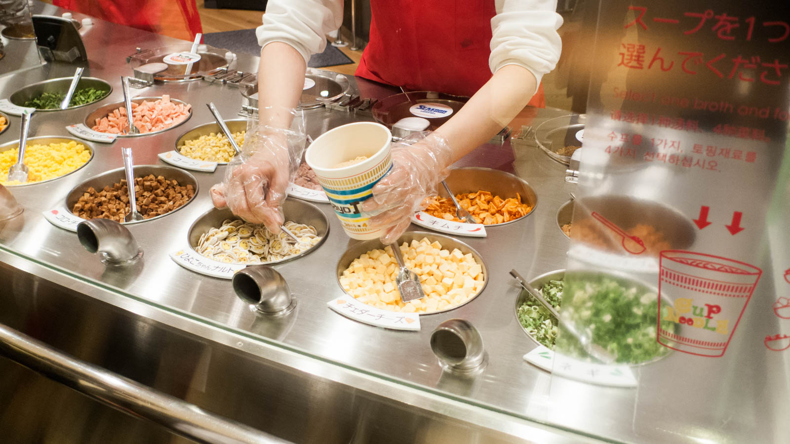 コスモワールドを抜けるとカップヌードルミュージアムがあります。せっかくなので、見学していくことになりました。